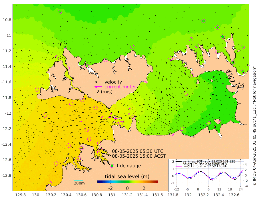 100cm/s 77T +4cm/s rms + 6cm/s 51T. Darwin_C1 52m 75cm/s 90T +4cm/s rms + 7cm/s -161T. Darwin_CW1 22m 64cm/s 74T +4cm/s rms + 8cm/s 61T. Darwin_CW2 34m 47cm/s 49T +3cm/s rms + 9cm/s 98T. Darwin_CW3 22m 92cm/s 89T +5cm/s rms + 7cm/s 88T. Darwin_C3 56m 57cm/s 65T +2cm/s rms + 9cm/s -126T. Darwin_CTbW 22m 36cm/s 87T +1cm/s rms + 1cm/s -47T. DARBGF 30m 32cm/s 114T +4cm/s rms + 3cm/s 80T. NRSDAR 19m 27cm Goodrich Bank 134cm Point Jenny 134cm Native Point 147cm Fish Reef 142cm Tapa Bay 90cm Point Fawcett (Offshore) 150cm Burge Point 134cm Munkunuwa 129cm Beagle A 139cm Parsons Bank 151cm Fenton Patches 130cm Hancox Shoal Area 145cm Nightcliff 154cm Darwin 146cm Charles Point Patches 106cm Glyde Point 66cm Chambers Bay 59cm Point Stuart 82cm Cape Hotham 58cm Christine Reef 60cm West Alligator Head 45cm East Field Island 64cm Two Hills Bay 62cm Camp Point 143cm Medina Inlet South 77cm South Barlow Point 58cm St. Asaph Bay 31cm Cape Van Dieman 34cm Snake Bay 33cm Cache Point 37cm Point Jahleel (Off) 57cm Cape Don 39cm Port Essington 40cm Smith Point - West 34cm NW Peacock Island 27cm North Of Jones Shoal 10cm Peacock Island 32cm Point David 38cm D'urville Point 31cm Copeland Island 35cm One Tree Point
