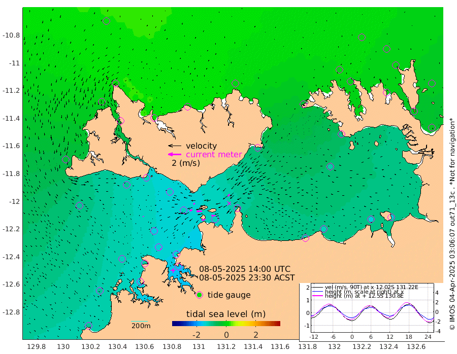 61cm/s -101T +4cm/s rms + 6cm/s 51T. Darwin_C1 52m 65cm/s -91T +4cm/s rms + 7cm/s -161T. Darwin_CW1 22m 44cm/s -106T +4cm/s rms + 8cm/s 61T. Darwin_CW2 34m 42cm/s -139T +3cm/s rms + 9cm/s 98T. Darwin_CW3 22m 79cm/s -90T +5cm/s rms + 7cm/s 88T. Darwin_C3 56m 25cm/s -115T +2cm/s rms + 9cm/s -126T. Darwin_CTbW 22m 7cm/s 150T +1cm/s rms + 1cm/s -47T. DARBGF 30m 10cm/s 146T +4cm/s rms + 3cm/s 80T. NRSDAR 19m 16cm Goodrich Bank -108cm Point Jenny -105cm Native Point -128cm Fish Reef -120cm Tapa Bay -42cm Point Fawcett (Offshore) -151cm Burge Point -111cm Munkunuwa -103cm Beagle A -134cm Parsons Bank -147cm Fenton Patches -132cm Hancox Shoal Area -141cm Nightcliff -158cm Darwin -137cm Charles Point Patches -134cm Glyde Point -126cm Chambers Bay -134cm Point Stuart -123cm Cape Hotham -117cm Christine Reef -147cm West Alligator Head -154cm East Field Island -107cm Two Hills Bay -107cm Camp Point -124cm Medina Inlet South -29cm South Barlow Point -10cm St. Asaph Bay 16cm Cape Van Dieman 14cm Snake Bay 8cm Cache Point -6cm Point Jahleel (Off) -44cm Cape Don -8cm Port Essington -5cm Smith Point - West -3cm NW Peacock Island 8cm North Of Jones Shoal 2cm Peacock Island -9cm Point David -5cm D'urville Point -12cm Copeland Island -13cm One Tree Point