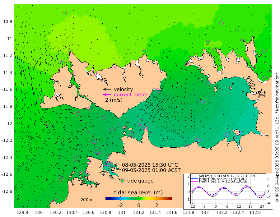 1cm/s -95T +4cm/s rms + 6cm/s 51T. Darwin_C1 52m 19cm/s -87T +4cm/s rms + 7cm/s -161T. Darwin_CW1 22m 3cm/s -114T +4cm/s rms + 8cm/s 61T. Darwin_CW2 34m 23cm/s -147T +3cm/s rms + 9cm/s 98T. Darwin_CW3 22m 22cm/s -86T +5cm/s rms + 7cm/s 88T. Darwin_C3 56m 12cm/s 62T +2cm/s rms + 9cm/s -126T. Darwin_CTbW 22m 36cm/s 99T +1cm/s rms + 1cm/s -47T. DARBGF 30m 39cm/s 127T +4cm/s rms + 3cm/s 80T. NRSDAR 19m 31cm Goodrich Bank -15cm Point Jenny -14cm Native Point -27cm Fish Reef -22cm Tapa Bay 26cm Point Fawcett (Offshore) -52cm Burge Point -16cm Munkunuwa -16cm Beagle A -39cm Parsons Bank -48cm Fenton Patches -41cm Hancox Shoal Area -38cm Nightcliff -57cm Darwin -39cm Charles Point Patches -69cm Glyde Point -87cm Chambers Bay -106cm Point Stuart -70cm Cape Hotham -88cm Christine Reef -120cm West Alligator Head -142cm East Field Island -71cm Two Hills Bay -76cm Camp Point -27cm Medina Inlet South 24cm South Barlow Point 33cm St. Asaph Bay 36cm Cape Van Dieman 35cm Snake Bay 30cm Cache Point 19cm Point Jahleel (Off) -7cm Cape Don 19cm Port Essington 24cm Smith Point - West 22cm NW Peacock Island 31cm North Of Jones Shoal 11cm Peacock Island 17cm Point David 24cm D'urville Point 15cm Copeland Island 15cm One Tree Point