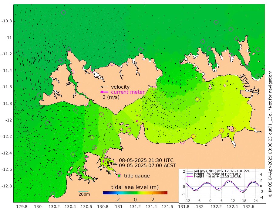 6cm/s -116T +4cm/s rms + 6cm/s 51T. Darwin_C1 52m 16cm/s 87T +4cm/s rms + 7cm/s -161T. Darwin_CW1 22m 2cm/s 66T +4cm/s rms + 8cm/s 61T. Darwin_CW2 34m 13cm/s 23T +3cm/s rms + 9cm/s 98T. Darwin_CW3 22m 19cm/s 94T +5cm/s rms + 7cm/s 88T. Darwin_C3 56m 14cm/s -117T +2cm/s rms + 9cm/s -126T. Darwin_CTbW 22m 28cm/s -81T +1cm/s rms + 1cm/s -47T. DARBGF 30m 34cm/s -55T +4cm/s rms + 3cm/s 80T. NRSDAR 19m -41cm Goodrich Bank 12cm Point Jenny 8cm Native Point 24cm Fish Reef 21cm Tapa Bay -22cm Point Fawcett (Offshore) 42cm Burge Point 16cm Munkunuwa 6cm Beagle A 36cm Parsons Bank 36cm Fenton Patches 43cm Hancox Shoal Area 39cm Nightcliff 49cm Darwin 32cm Charles Point Patches 60cm Glyde Point 87cm Chambers Bay 102cm Point Stuart 71cm Cape Hotham 81cm Christine Reef 115cm West Alligator Head 133cm East Field Island 69cm Two Hills Bay 66cm Camp Point 22cm Medina Inlet South -31cm South Barlow Point -35cm St. Asaph Bay -43cm Cape Van Dieman -44cm Snake Bay -35cm Cache Point -23cm Point Jahleel (Off) 3cm Cape Don -22cm Port Essington -25cm Smith Point - West -24cm NW Peacock Island -28cm North Of Jones Shoal -9cm Peacock Island -12cm Point David -25cm D'urville Point -8cm Copeland Island -11cm One Tree Point