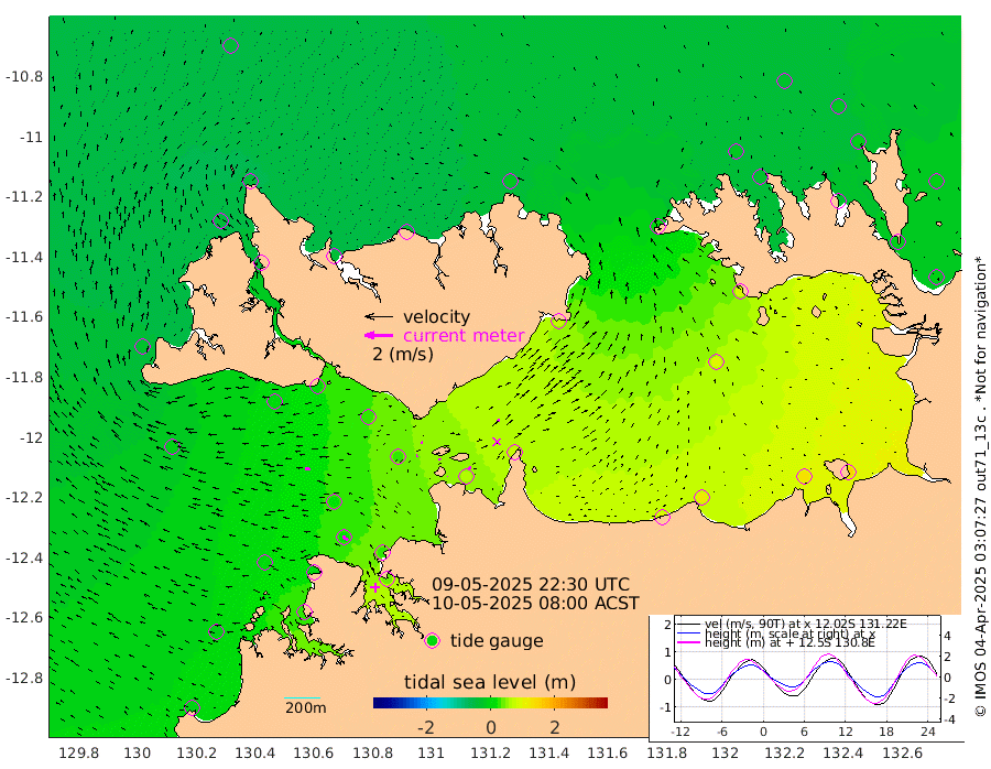 2cm/s 171T +4cm/s rms + 6cm/s 51T. Darwin_C1 52m 23cm/s 87T +4cm/s rms + 7cm/s -161T. Darwin_CW1 22m 5cm/s -114T +4cm/s rms + 8cm/s 61T. Darwin_CW2 34m 18cm/s 27T +3cm/s rms + 9cm/s 98T. Darwin_CW3 22m 17cm/s 98T +5cm/s rms + 7cm/s 88T. Darwin_C3 56m 13cm/s -119T +2cm/s rms + 9cm/s -126T. Darwin_CTbW 22m 37cm/s -83T +1cm/s rms + 1cm/s -47T. DARBGF 30m 44cm/s -54T +4cm/s rms + 3cm/s 80T. NRSDAR 19m -38cm Goodrich Bank -2cm Point Jenny -5cm Native Point 10cm Fish Reef 7cm Tapa Bay -28cm Point Fawcett (Offshore) 28cm Burge Point 1cm Munkunuwa -7cm Beagle A 23cm Parsons Bank 21cm Fenton Patches 32cm Hancox Shoal Area 26cm Nightcliff 38cm Darwin 21cm Charles Point Patches 60cm Glyde Point 98cm Chambers Bay 118cm Point Stuart 76cm Cape Hotham 92cm Christine Reef 135cm West Alligator Head 157cm East Field Island 80cm Two Hills Bay 74cm Camp Point 10cm Medina Inlet South -37cm South Barlow Point -38cm St. Asaph Bay -42cm Cape Van Dieman -42cm Snake Bay -33cm Cache Point -20cm Point Jahleel (Off) 6cm Cape Don -21cm Port Essington -24cm Smith Point - West -22cm NW Peacock Island -25cm North Of Jones Shoal -9cm Peacock Island -11cm Point David -25cm D'urville Point -8cm Copeland Island -9cm One Tree Point