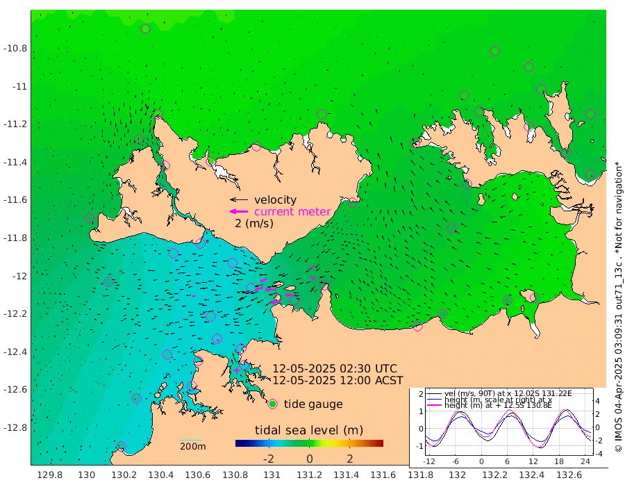 123cm/s -102T +4cm/s rms + 6cm/s 51T. Darwin_C1 52m 107cm/s -90T +4cm/s rms + 7cm/s -161T. Darwin_CW1 22m 85cm/s -107T +4cm/s rms + 8cm/s 61T. Darwin_CW2 34m 50cm/s -132T +3cm/s rms + 9cm/s 98T. Darwin_CW3 22m 122cm/s -91T +5cm/s rms + 7cm/s 88T. Darwin_C3 56m 72cm/s -115T +2cm/s rms + 9cm/s -126T. Darwin_CTbW 22m 36cm/s -94T +1cm/s rms + 1cm/s -47T. DARBGF 30m 32cm/s -71T +4cm/s rms + 3cm/s 80T. NRSDAR 19m 33cm Goodrich Bank -108cm Point Jenny -107cm Native Point -118cm Fish Reef -130cm Tapa Bay -39cm Point Fawcett (Offshore) -131cm Burge Point -132cm Munkunuwa -81cm Beagle A -141cm Parsons Bank -125cm Fenton Patches -136cm Hancox Shoal Area -142cm Nightcliff -153cm Darwin -136cm Charles Point Patches -90cm Glyde Point -48cm Chambers Bay -35cm Point Stuart -63cm Cape Hotham -35cm Christine Reef -36cm West Alligator Head -14cm East Field Island -36cm Two Hills Bay -38cm Camp Point -128cm Medina Inlet South -31cm South Barlow Point -5cm St. Asaph Bay 28cm Cape Van Dieman 24cm Snake Bay 31cm Cache Point 16cm Point Jahleel (Off) -19cm Cape Don 3cm Port Essington 2cm Smith Point - West 7cm NW Peacock Island 20cm North Of Jones Shoal 5cm Peacock Island -11cm Point David -1cm D'urville Point -15cm Copeland Island -7cm One Tree Point
