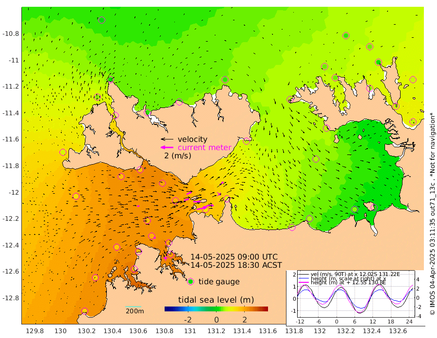 163cm/s 77T +4cm/s rms + 6cm/s 51T. Darwin_C1 52m 115cm/s 87T +4cm/s rms + 7cm/s -161T. Darwin_CW1 22m 79cm/s 75T +4cm/s rms + 8cm/s 61T. Darwin_CW2 34m 81cm/s 46T +3cm/s rms + 9cm/s 98T. Darwin_CW3 22m 113cm/s 89T +5cm/s rms + 7cm/s 88T. Darwin_C3 56m 91cm/s 64T +2cm/s rms + 9cm/s -126T. Darwin_CTbW 22m 35cm/s 85T +1cm/s rms + 1cm/s -47T. DARBGF 30m 34cm/s 108T +4cm/s rms + 3cm/s 80T. NRSDAR 19m 10cm Goodrich Bank 151cm Point Jenny 153cm Native Point 161cm Fish Reef 177cm Tapa Bay 81cm Point Fawcett (Offshore) 188cm Burge Point 171cm Munkunuwa 130cm Beagle A 194cm Parsons Bank 177cm Fenton Patches 184cm Hancox Shoal Area 197cm Nightcliff 210cm Darwin 190cm Charles Point Patches 133cm Glyde Point 66cm Chambers Bay 59cm Point Stuart 103cm Cape Hotham 62cm Christine Reef 55cm West Alligator Head 30cm East Field Island 70cm Two Hills Bay 77cm Camp Point 178cm Medina Inlet South 82cm South Barlow Point 47cm St. Asaph Bay 17cm Cape Van Dieman 32cm Snake Bay 14cm Cache Point 29cm Point Jahleel (Off) 64cm Cape Don 45cm Port Essington 43cm Smith Point - West 43cm NW Peacock Island 28cm North Of Jones Shoal 13cm Peacock Island 74cm Point David 52cm D'urville Point 74cm Copeland Island 68cm One Tree Point