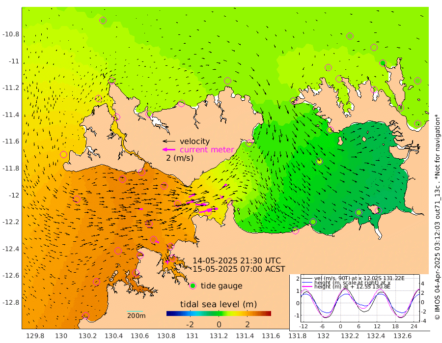 210cm/s 77T +4cm/s rms + 6cm/s 51T. Darwin_C1 52m 149cm/s 90T +4cm/s rms + 7cm/s -161T. Darwin_CW1 22m 120cm/s 74T +4cm/s rms + 8cm/s 61T. Darwin_CW2 34m 95cm/s 49T +3cm/s rms + 9cm/s 98T. Darwin_CW3 22m 166cm/s 89T +5cm/s rms + 7cm/s 88T. Darwin_C3 56m 116cm/s 65T +2cm/s rms + 9cm/s -126T. Darwin_CTbW 22m 67cm/s 86T +1cm/s rms + 1cm/s -47T. DARBGF 30m 65cm/s 113T +4cm/s rms + 3cm/s 80T. NRSDAR 19m 41cm Goodrich Bank 226cm Point Jenny 226cm Native Point 227cm Fish Reef 248cm Tapa Bay 143cm Point Fawcett (Offshore) 249cm Burge Point 243cm Munkunuwa 203cm Beagle A 242cm Parsons Bank 245cm Fenton Patches 236cm Hancox Shoal Area 259cm Nightcliff 257cm Darwin 247cm Charles Point Patches 150cm Glyde Point 67cm Chambers Bay 38cm Point Stuart 104cm Cape Hotham 73cm Christine Reef 35cm West Alligator Head -2cm East Field Island 62cm Two Hills Bay 69cm Camp Point 239cm Medina Inlet South 130cm South Barlow Point 101cm St. Asaph Bay 47cm Cape Van Dieman 50cm Snake Bay 44cm Cache Point 52cm Point Jahleel (Off) 72cm Cape Don 50cm Port Essington 58cm Smith Point - West 45cm NW Peacock Island 37cm North Of Jones Shoal 13cm Peacock Island 37cm Point David 53cm D'urville Point 36cm Copeland Island 37cm One Tree Point
