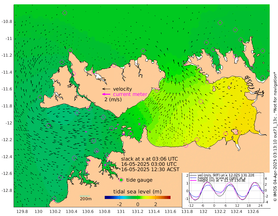 77cm/s -103T +4cm/s rms + 6cm/s 51T. Darwin_C1 52m 29cm/s -85T +4cm/s rms + 7cm/s -161T. Darwin_CW1 22m 51cm/s -111T +4cm/s rms + 8cm/s 61T. Darwin_CW2 34m 19cm/s -99T +3cm/s rms + 9cm/s 98T. Darwin_CW3 22m 39cm/s -95T +5cm/s rms + 7cm/s 88T. Darwin_C3 56m 43cm/s -118T +2cm/s rms + 9cm/s -126T. Darwin_CTbW 22m 47cm/s -88T +1cm/s rms + 1cm/s -47T. DARBGF 30m 44cm/s -59T +4cm/s rms + 3cm/s 80T. NRSDAR 19m 0cm Goodrich Bank -58cm Point Jenny -60cm Native Point -56cm Fish Reef -64cm Tapa Bay -33cm Point Fawcett (Offshore) -65cm Burge Point -88cm Munkunuwa -50cm Beagle A -76cm Parsons Bank -59cm Fenton Patches -56cm Hancox Shoal Area -65cm Nightcliff -58cm Darwin -54cm Charles Point Patches 8cm Glyde Point 83cm Chambers Bay 98cm Point Stuart 31cm Cape Hotham 72cm Christine Reef 114cm West Alligator Head 151cm East Field Island 60cm Two Hills Bay 57cm Camp Point -65cm Medina Inlet South -46cm South Barlow Point -26cm St. Asaph Bay -8cm Cape Van Dieman -12cm Snake Bay 3cm Cache Point 2cm Point Jahleel (Off) 6cm Cape Don -6cm Port Essington -11cm Smith Point - West -8cm NW Peacock Island 1cm North Of Jones Shoal -2cm Peacock Island -15cm Point David -15cm D'urville Point -15cm Copeland Island -8cm One Tree Point