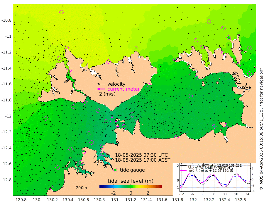 91cm/s -100T +4cm/s rms + 6cm/s 51T. Darwin_C1 52m 48cm/s -91T +4cm/s rms + 7cm/s -161T. Darwin_CW1 22m 27cm/s -107T +4cm/s rms + 8cm/s 61T. Darwin_CW2 34m 51cm/s -136T +3cm/s rms + 9cm/s 98T. Darwin_CW3 22m 41cm/s -90T +5cm/s rms + 7cm/s 88T. Darwin_C3 56m 52cm/s -115T +2cm/s rms + 9cm/s -126T. Darwin_CTbW 22m 10cm/s 106T +1cm/s rms + 1cm/s -47T. DARBGF 30m 12cm/s 152T +4cm/s rms + 3cm/s 80T. NRSDAR 19m 75cm Goodrich Bank -9cm Point Jenny -6cm Native Point -12cm Fish Reef -20cm Tapa Bay 43cm Point Fawcett (Offshore) -27cm Burge Point -21cm Munkunuwa 8cm Beagle A -38cm Parsons Bank -28cm Fenton Patches -46cm Hancox Shoal Area -54cm Nightcliff -39cm Darwin -12cm Charles Point Patches -42cm Glyde Point -72cm Chambers Bay -72cm Point Stuart -49cm Cape Hotham -65cm Christine Reef -87cm West Alligator Head -91cm East Field Island -48cm Two Hills Bay -35cm Camp Point -16cm Medina Inlet South 48cm South Barlow Point 59cm St. Asaph Bay 75cm Cape Van Dieman 72cm Snake Bay 70cm Cache Point 50cm Point Jahleel (Off) 16cm Cape Don 50cm Port Essington 43cm Smith Point - West 45cm NW Peacock Island 53cm North Of Jones Shoal 17cm Peacock Island 28cm Point David 41cm D'urville Point 21cm Copeland Island 30cm One Tree Point