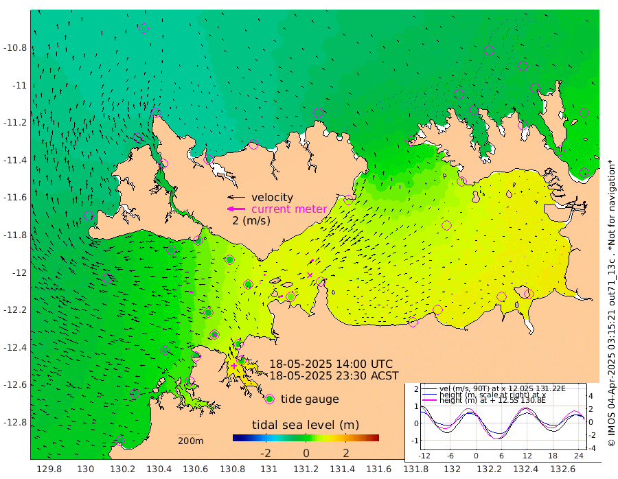49cm/s 80T +4cm/s rms + 6cm/s 51T. Darwin_C1 52m 12cm/s 94T +4cm/s rms + 7cm/s -161T. Darwin_CW1 22m 4cm/s 22T +4cm/s rms + 8cm/s 61T. Darwin_CW2 34m 46cm/s 42T +3cm/s rms + 9cm/s 98T. Darwin_CW3 22m 7cm/s 99T +5cm/s rms + 7cm/s 88T. Darwin_C3 56m 23cm/s 64T +2cm/s rms + 9cm/s -126T. Darwin_CTbW 22m 41cm/s -86T +1cm/s rms + 1cm/s -47T. DARBGF 30m 49cm/s -54T +4cm/s rms + 3cm/s 80T. NRSDAR 19m -93cm Goodrich Bank -45cm Point Jenny -47cm Native Point -42cm Fish Reef -27cm Tapa Bay -89cm Point Fawcett (Offshore) -29cm Burge Point -43cm Munkunuwa -67cm Beagle A -5cm Parsons Bank -28cm Fenton Patches 13cm Hancox Shoal Area 1cm Nightcliff 1cm Darwin -25cm Charles Point Patches 37cm Glyde Point 96cm Chambers Bay 107cm Point Stuart 57cm Cape Hotham 76cm Christine Reef 123cm West Alligator Head 142cm East Field Island 66cm Two Hills Bay 57cm Camp Point -37cm Medina Inlet South -90cm South Barlow Point -99cm St. Asaph Bay -94cm Cape Van Dieman -87cm Snake Bay -86cm Cache Point -62cm Point Jahleel (Off) -17cm Cape Don -48cm Port Essington -47cm Smith Point - West -39cm NW Peacock Island -58cm North Of Jones Shoal -17cm Peacock Island 9cm Point David -35cm D'urville Point 17cm Copeland Island -3cm One Tree Point
