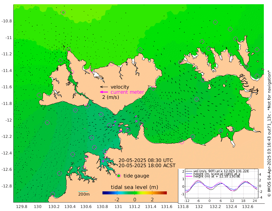 88cm/s -101T +4cm/s rms + 6cm/s 51T. Darwin_C1 52m 42cm/s -90T +4cm/s rms + 7cm/s -161T. Darwin_CW1 22m 36cm/s -107T +4cm/s rms + 8cm/s 61T. Darwin_CW2 34m 42cm/s -134T +3cm/s rms + 9cm/s 98T. Darwin_CW3 22m 46cm/s -91T +5cm/s rms + 7cm/s 88T. Darwin_C3 56m 52cm/s -115T +2cm/s rms + 9cm/s -126T. Darwin_CTbW 22m 12cm/s -96T +1cm/s rms + 1cm/s -47T. DARBGF 30m 11cm/s -79T +4cm/s rms + 3cm/s 80T. NRSDAR 19m 34cm Goodrich Bank -53cm Point Jenny -51cm Native Point -54cm Fish Reef -62cm Tapa Bay -5cm Point Fawcett (Offshore) -65cm Burge Point -59cm Munkunuwa -43cm Beagle A -71cm Parsons Bank -69cm Fenton Patches -73cm Hancox Shoal Area -84cm Nightcliff -67cm Darwin -48cm Charles Point Patches -53cm Glyde Point -56cm Chambers Bay -51cm Point Stuart -52cm Cape Hotham -52cm Christine Reef -59cm West Alligator Head -52cm East Field Island -44cm Two Hills Bay -31cm Camp Point -53cm Medina Inlet South 0cm South Barlow Point 13cm St. Asaph Bay 31cm Cape Van Dieman 28cm Snake Bay 28cm Cache Point 14cm Point Jahleel (Off) -7cm Cape Don 16cm Port Essington 7cm Smith Point - West 10cm NW Peacock Island 21cm North Of Jones Shoal 6cm Peacock Island -3cm Point David 5cm D'urville Point -6cm Copeland Island 3cm One Tree Point