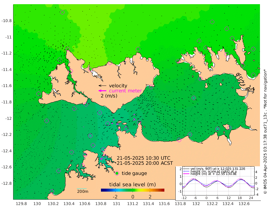 52cm/s -102T +4cm/s rms + 6cm/s 51T. Darwin_C1 52m 26cm/s -89T +4cm/s rms + 7cm/s -161T. Darwin_CW1 22m 35cm/s -108T +4cm/s rms + 8cm/s 61T. Darwin_CW2 34m 34cm/s -137T +3cm/s rms + 9cm/s 98T. Darwin_CW3 22m 50cm/s -91T +5cm/s rms + 7cm/s 88T. Darwin_C3 56m 31cm/s -115T +2cm/s rms + 9cm/s -126T. Darwin_CTbW 22m 5cm/s -123T +1cm/s rms + 1cm/s -47T. DARBGF 30m 4cm/s -130T +4cm/s rms + 3cm/s 80T. NRSDAR 19m 30cm Goodrich Bank -70cm Point Jenny -69cm Native Point -73cm Fish Reef -79cm Tapa Bay -15cm Point Fawcett (Offshore) -88cm Burge Point -67cm Munkunuwa -65cm Beagle A -81cm Parsons Bank -95cm Fenton Patches -88cm Hancox Shoal Area -105cm Nightcliff -88cm Darwin -68cm Charles Point Patches -80cm Glyde Point -93cm Chambers Bay -87cm Point Stuart -78cm Cape Hotham -84cm Christine Reef -98cm West Alligator Head -101cm East Field Island -68cm Two Hills Bay -64cm Camp Point -69cm Medina Inlet South -3cm South Barlow Point 7cm St. Asaph Bay 29cm Cape Van Dieman 27cm Snake Bay 23cm Cache Point 9cm Point Jahleel (Off) -16cm Cape Don 16cm Port Essington 9cm Smith Point - West 12cm NW Peacock Island 21cm North Of Jones Shoal 7cm Peacock Island 3cm Point David 9cm D'urville Point 0cm Copeland Island 6cm One Tree Point