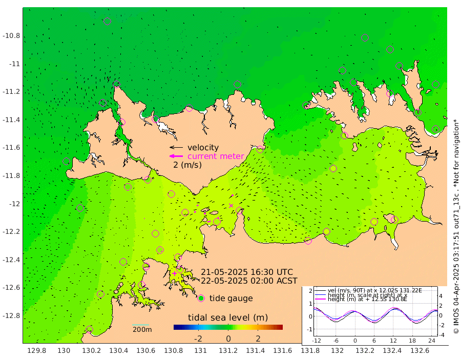 43cm/s 79T +4cm/s rms + 6cm/s 51T. Darwin_C1 52m 18cm/s 85T +4cm/s rms + 7cm/s -161T. Darwin_CW1 22m 24cm/s 72T +4cm/s rms + 8cm/s 61T. Darwin_CW2 34m 30cm/s 43T +3cm/s rms + 9cm/s 98T. Darwin_CW3 22m 32cm/s 89T +5cm/s rms + 7cm/s 88T. Darwin_C3 56m 24cm/s 64T +2cm/s rms + 9cm/s -126T. Darwin_CTbW 22m 2cm/s -48T +1cm/s rms + 1cm/s -47T. DARBGF 30m 7cm/s -32T +4cm/s rms + 3cm/s 80T. NRSDAR 19m -39cm Goodrich Bank 50cm Point Jenny 46cm Native Point 45cm Fish Reef 61cm Tapa Bay -4cm Point Fawcett (Offshore) 57cm Burge Point 40cm Munkunuwa 31cm Beagle A 64cm Parsons Bank 61cm Fenton Patches 77cm Hancox Shoal Area 76cm Nightcliff 67cm Darwin 54cm Charles Point Patches 67cm Glyde Point 88cm Chambers Bay 80cm Point Stuart 67cm Cape Hotham 75cm Christine Reef 87cm West Alligator Head 89cm East Field Island 60cm Two Hills Bay 58cm Camp Point 43cm Medina Inlet South -16cm South Barlow Point -25cm St. Asaph Bay -37cm Cape Van Dieman -38cm Snake Bay -31cm Cache Point -16cm Point Jahleel (Off) 15cm Cape Don -9cm Port Essington -4cm Smith Point - West -3cm NW Peacock Island -20cm North Of Jones Shoal -5cm Peacock Island 25cm Point David 2cm D'urville Point 30cm Copeland Island 15cm One Tree Point