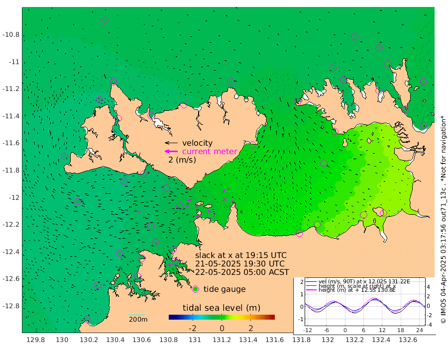 90cm/s -103T +4cm/s rms + 6cm/s 51T. Darwin_C1 52m 53cm/s -89T +4cm/s rms + 7cm/s -161T. Darwin_CW1 22m 37cm/s -107T +4cm/s rms + 8cm/s 61T. Darwin_CW2 34m 31cm/s -120T +3cm/s rms + 9cm/s 98T. Darwin_CW3 22m 46cm/s -92T +5cm/s rms + 7cm/s 88T. Darwin_C3 56m 53cm/s -115T +2cm/s rms + 9cm/s -126T. Darwin_CTbW 22m 33cm/s -89T +1cm/s rms + 1cm/s -47T. DARBGF 30m 31cm/s -63T +4cm/s rms + 3cm/s 80T. NRSDAR 19m -53cm Goodrich Bank -70cm Point Jenny -72cm Native Point -67cm Fish Reef -67cm Tapa Bay -71cm Point Fawcett (Offshore) -68cm Burge Point -77cm Munkunuwa -65cm Beagle A -69cm Parsons Bank -57cm Fenton Patches -50cm Hancox Shoal Area -52cm Nightcliff -60cm Darwin -66cm Charles Point Patches -19cm Glyde Point 30cm Chambers Bay 35cm Point Stuart -1cm Cape Hotham 18cm Christine Reef 45cm West Alligator Head 70cm East Field Island 6cm Two Hills Bay 10cm Camp Point -72cm Medina Inlet South -75cm South Barlow Point -64cm St. Asaph Bay -58cm Cape Van Dieman -60cm Snake Bay -53cm Cache Point -46cm Point Jahleel (Off) -41cm Cape Don -51cm Port Essington -51cm Smith Point - West -48cm NW Peacock Island -46cm North Of Jones Shoal -16cm Peacock Island -39cm Point David -50cm D'urville Point -35cm Copeland Island -42cm One Tree Point