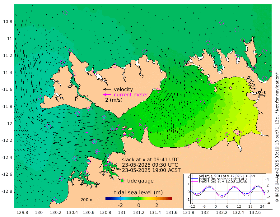 72cm/s -102T +4cm/s rms + 6cm/s 51T. Darwin_C1 52m 29cm/s -90T +4cm/s rms + 7cm/s -161T. Darwin_CW1 22m 44cm/s -106T +4cm/s rms + 8cm/s 61T. Darwin_CW2 34m 14cm/s -121T +3cm/s rms + 9cm/s 98T. Darwin_CW3 22m 45cm/s -93T +5cm/s rms + 7cm/s 88T. Darwin_C3 56m 50cm/s -116T +2cm/s rms + 9cm/s -126T. Darwin_CTbW 22m 56cm/s -88T +1cm/s rms + 1cm/s -47T. DARBGF 30m 58cm/s -57T +4cm/s rms + 3cm/s 80T. NRSDAR 19m -69cm Goodrich Bank -118cm Point Jenny -117cm Native Point -116cm Fish Reef -114cm Tapa Bay -111cm Point Fawcett (Offshore) -107cm Burge Point -112cm Munkunuwa -122cm Beagle A -103cm Parsons Bank -113cm Fenton Patches -92cm Hancox Shoal Area -103cm Nightcliff -93cm Darwin -102cm Charles Point Patches -43cm Glyde Point 10cm Chambers Bay 27cm Point Stuart -26cm Cape Hotham 5cm Christine Reef 38cm West Alligator Head 68cm East Field Island -8cm Two Hills Bay 2cm Camp Point -107cm Medina Inlet South -102cm South Barlow Point -95cm St. Asaph Bay -76cm Cape Van Dieman -75cm Snake Bay -76cm Cache Point -68cm Point Jahleel (Off) -55cm Cape Don -66cm Port Essington -75cm Smith Point - West -69cm NW Peacock Island -64cm North Of Jones Shoal -23cm Peacock Island -56cm Point David -74cm D'urville Point -54cm Copeland Island -55cm One Tree Point