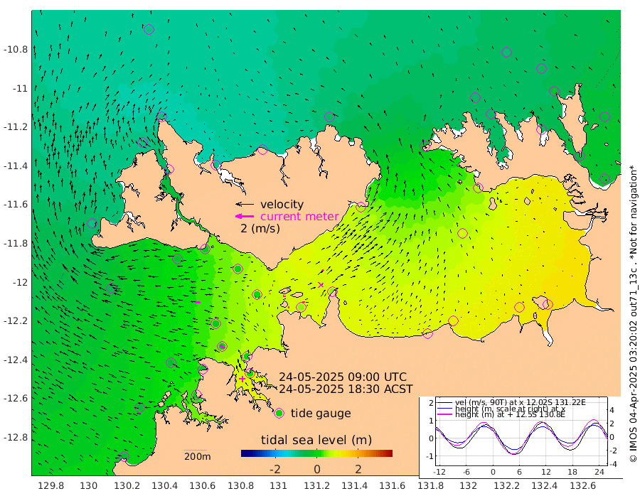7cm/s 86T +4cm/s rms + 6cm/s 51T. Darwin_C1 52m 30cm/s 93T +4cm/s rms + 7cm/s -161T. Darwin_CW1 22m 5cm/s 37T +4cm/s rms + 8cm/s 61T. Darwin_CW2 34m 30cm/s 40T +3cm/s rms + 9cm/s 98T. Darwin_CW3 22m 26cm/s 93T +5cm/s rms + 7cm/s 88T. Darwin_C3 56m 7cm/s -120T +2cm/s rms + 9cm/s -126T. Darwin_CTbW 22m 54cm/s -84T +1cm/s rms + 1cm/s -47T. DARBGF 30m 62cm/s -55T +4cm/s rms + 3cm/s 80T. NRSDAR 19m -95cm Goodrich Bank -40cm Point Jenny -40cm Native Point -34cm Fish Reef -23cm Tapa Bay -93cm Point Fawcett (Offshore) -4cm Burge Point -28cm Munkunuwa -58cm Beagle A -1cm Parsons Bank -11cm Fenton Patches 10cm Hancox Shoal Area 6cm Nightcliff 18cm Darwin -11cm Charles Point Patches 46cm Glyde Point 90cm Chambers Bay 108cm Point Stuart 54cm Cape Hotham 80cm Christine Reef 127cm West Alligator Head 154cm East Field Island 58cm Two Hills Bay 67cm Camp Point -22cm Medina Inlet South -90cm South Barlow Point -100cm St. Asaph Bay -99cm Cape Van Dieman -94cm Snake Bay -97cm Cache Point -75cm Point Jahleel (Off) -31cm Cape Don -69cm Port Essington -77cm Smith Point - West -71cm NW Peacock Island -81cm North Of Jones Shoal -27cm Peacock Island -38cm Point David -71cm D'urville Point -34cm Copeland Island -43cm One Tree Point