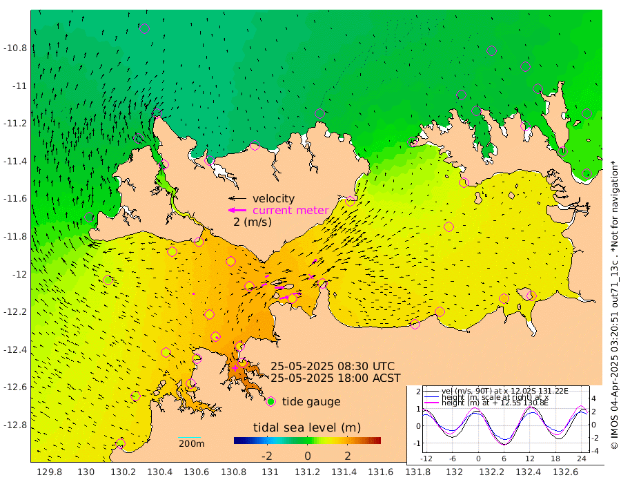 102cm/s 79T +4cm/s rms + 6cm/s 51T. Darwin_C1 52m 93cm/s 93T +4cm/s rms + 7cm/s -161T. Darwin_CW1 22m 58cm/s 70T +4cm/s rms + 8cm/s 61T. Darwin_CW2 34m 73cm/s 43T +3cm/s rms + 9cm/s 98T. Darwin_CW3 22m 104cm/s 90T +5cm/s rms + 7cm/s 88T. Darwin_C3 56m 45cm/s 65T +2cm/s rms + 9cm/s -126T. Darwin_CTbW 22m 24cm/s -73T +1cm/s rms + 1cm/s -47T. DARBGF 30m 32cm/s -46T +4cm/s rms + 3cm/s 80T. NRSDAR 19m -78cm Goodrich Bank 71cm Point Jenny 71cm Native Point 83cm Fish Reef 98cm Tapa Bay -27cm Point Fawcett (Offshore) 124cm Burge Point 89cm Munkunuwa 45cm Beagle A 126cm Parsons Bank 115cm Fenton Patches 129cm Hancox Shoal Area 131cm Nightcliff 149cm Darwin 110cm Charles Point Patches 132cm Glyde Point 134cm Chambers Bay 149cm Point Stuart 122cm Cape Hotham 122cm Christine Reef 165cm West Alligator Head 174cm East Field Island 107cm Two Hills Bay 112cm Camp Point 95cm Medina Inlet South -29cm South Barlow Point -58cm St. Asaph Bay -77cm Cape Van Dieman -69cm Snake Bay -75cm Cache Point -46cm Point Jahleel (Off) 15cm Cape Don -34cm Port Essington -39cm Smith Point - West -36cm NW Peacock Island -60cm North Of Jones Shoal -18cm Peacock Island 8cm Point David -31cm D'urville Point 13cm Copeland Island -2cm One Tree Point