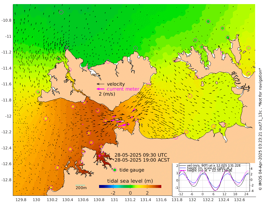 193cm/s 78T +4cm/s rms + 6cm/s 51T. Darwin_C1 52m 141cm/s 91T +4cm/s rms + 7cm/s -161T. Darwin_CW1 22m 90cm/s 73T +4cm/s rms + 8cm/s 61T. Darwin_CW2 34m 111cm/s 43T +3cm/s rms + 9cm/s 98T. Darwin_CW3 22m 140cm/s 89T +5cm/s rms + 7cm/s 88T. Darwin_C3 56m 96cm/s 65T +2cm/s rms + 9cm/s -126T. Darwin_CTbW 22m 17cm/s 72T +1cm/s rms + 1cm/s -47T. DARBGF 30m 15cm/s 84T +4cm/s rms + 3cm/s 80T. NRSDAR 19m -31cm Goodrich Bank 153cm Point Jenny 152cm Native Point 174cm Fish Reef 184cm Tapa Bay 51cm Point Fawcett (Offshore) 207cm Burge Point 175cm Munkunuwa 123cm Beagle A 218cm Parsons Bank 194cm Fenton Patches 208cm Hancox Shoal Area 205cm Nightcliff 238cm Darwin 205cm Charles Point Patches 176cm Glyde Point 128cm Chambers Bay 140cm Point Stuart 153cm Cape Hotham 117cm Christine Reef 146cm West Alligator Head 131cm East Field Island 124cm Two Hills Bay 120cm Camp Point 183cm Medina Inlet South 46cm South Barlow Point 4cm St. Asaph Bay -25cm Cape Van Dieman -12cm Snake Bay -21cm Cache Point 4cm Point Jahleel (Off) 68cm Cape Don 30cm Port Essington 27cm Smith Point - West 30cm NW Peacock Island -4cm North Of Jones Shoal 4cm Peacock Island 77cm Point David 40cm D'urville Point 82cm Copeland Island 66cm One Tree Point