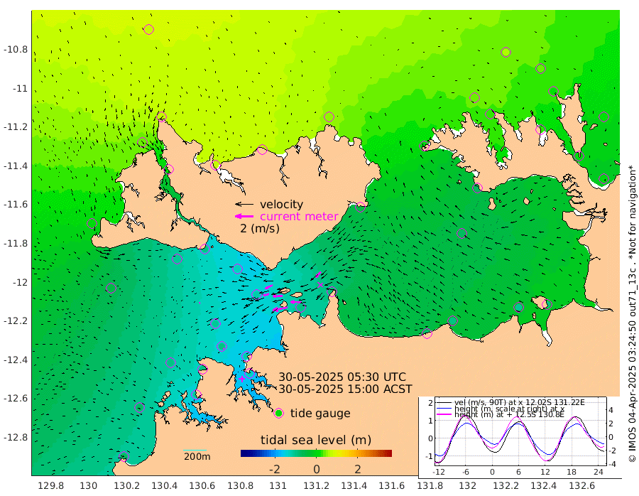 166cm/s -101T +4cm/s rms + 6cm/s 51T. Darwin_C1 52m 119cm/s -91T +4cm/s rms + 7cm/s -161T. Darwin_CW1 22m 67cm/s -107T +4cm/s rms + 8cm/s 61T. Darwin_CW2 34m 81cm/s -135T +3cm/s rms + 9cm/s 98T. Darwin_CW3 22m 102cm/s -91T +5cm/s rms + 7cm/s 88T. Darwin_C3 56m 90cm/s -116T +2cm/s rms + 9cm/s -126T. Darwin_CTbW 22m 10cm/s -115T +1cm/s rms + 1cm/s -47T. DARBGF 30m 11cm/s -113T +4cm/s rms + 3cm/s 80T. NRSDAR 19m 78cm Goodrich Bank -75cm Point Jenny -72cm Native Point -91cm Fish Reef -98cm Tapa Bay 9cm Point Fawcett (Offshore) -110cm Burge Point -106cm Munkunuwa -48cm Beagle A -126cm Parsons Bank -105cm Fenton Patches -121cm Hancox Shoal Area -121cm Nightcliff -131cm Darwin -97cm Charles Point Patches -97cm Glyde Point -87cm Chambers Bay -95cm Point Stuart -89cm Cape Hotham -76cm Christine Reef -108cm West Alligator Head -98cm East Field Island -72cm Two Hills Bay -55cm Camp Point -96cm Medina Inlet South 18cm South Barlow Point 44cm St. Asaph Bay 74cm Cape Van Dieman 71cm Snake Bay 71cm Cache Point 45cm Point Jahleel (Off) -2cm Cape Don 37cm Port Essington 32cm Smith Point - West 36cm NW Peacock Island 58cm North Of Jones Shoal 18cm Peacock Island 10cm Point David 29cm D'urville Point 4cm Copeland Island 17cm One Tree Point