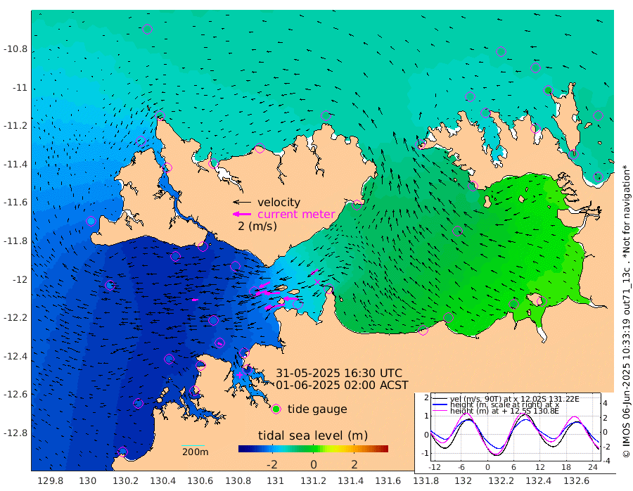 233cm/s -102T +4cm/s rms + 6cm/s 51T. Darwin_C1 52m 169cm/s -89T +4cm/s rms + 7cm/s -161T. Darwin_CW1 22m 124cm/s -108T +4cm/s rms + 8cm/s 61T. Darwin_CW2 34m 94cm/s -127T +3cm/s rms + 9cm/s 98T. Darwin_CW3 22m 171cm/s -91T +5cm/s rms + 7cm/s 88T. Darwin_C3 56m 131cm/s -115T +2cm/s rms + 9cm/s -126T. Darwin_CTbW 22m 69cm/s -94T +1cm/s rms + 1cm/s -47T. DARBGF 30m 52cm/s -66T +4cm/s rms + 3cm/s 80T. NRSDAR 19m -95cm Goodrich Bank -235cm Point Jenny -237cm Native Point -246cm Fish Reef -255cm Tapa Bay -190cm Point Fawcett (Offshore) -258cm Burge Point -251cm Munkunuwa -215cm Beagle A -251cm Parsons Bank -241cm Fenton Patches -233cm Hancox Shoal Area -251cm Nightcliff -272cm Darwin -269cm Charles Point Patches -163cm Glyde Point -63cm Chambers Bay -49cm Point Stuart -119cm Cape Hotham -64cm Christine Reef -41cm West Alligator Head 0cm East Field Island -84cm Two Hills Bay -84cm Camp Point -260cm Medina Inlet South -175cm South Barlow Point -147cm St. Asaph Bay -103cm Cape Van Dieman -114cm Snake Bay -100cm Cache Point -101cm Point Jahleel (Off) -115cm Cape Don -105cm Port Essington -103cm Smith Point - West -95cm NW Peacock Island -95cm North Of Jones Shoal -34cm Peacock Island -90cm Point David -101cm D'urville Point -84cm Copeland Island -96cm One Tree Point