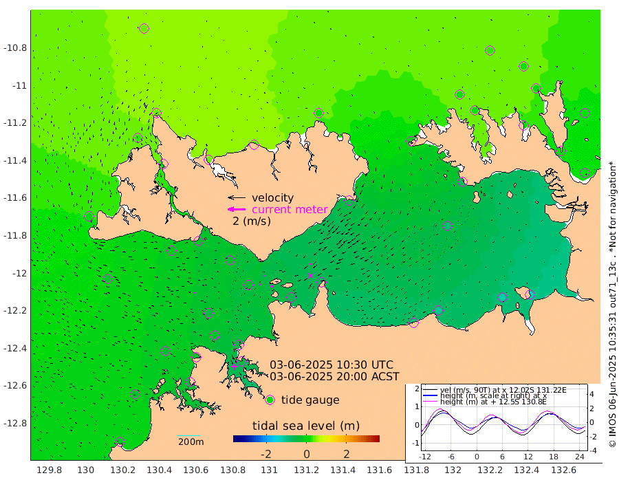 1cm/s 119T +4cm/s rms + 6cm/s 51T. Darwin_C1 52m 8cm/s 67T +4cm/s rms + 7cm/s -161T. Darwin_CW1 22m 13cm/s -109T +4cm/s rms + 8cm/s 61T. Darwin_CW2 34m 21cm/s -148T +3cm/s rms + 9cm/s 98T. Darwin_CW3 22m 27cm/s -89T +5cm/s rms + 7cm/s 88T. Darwin_C3 56m 7cm/s 56T +2cm/s rms + 9cm/s -126T. Darwin_CTbW 22m 14cm/s 104T +1cm/s rms + 1cm/s -47T. DARBGF 30m 16cm/s 130T +4cm/s rms + 3cm/s 80T. NRSDAR 19m 36cm Goodrich Bank -30cm Point Jenny -26cm Native Point -42cm Fish Reef -30cm Tapa Bay 8cm Point Fawcett (Offshore) -49cm Burge Point -21cm Munkunuwa -32cm Beagle A -38cm Parsons Bank -55cm Fenton Patches -43cm Hancox Shoal Area -47cm Nightcliff -47cm Darwin -31cm Charles Point Patches -65cm Glyde Point -99cm Chambers Bay -106cm Point Stuart -71cm Cape Hotham -88cm Christine Reef -121cm West Alligator Head -138cm East Field Island -75cm Two Hills Bay -64cm Camp Point -29cm Medina Inlet South 22cm South Barlow Point 26cm St. Asaph Bay 38cm Cape Van Dieman 41cm Snake Bay 27cm Cache Point 17cm Point Jahleel (Off) -10cm Cape Don 20cm Port Essington 18cm Smith Point - West 20cm NW Peacock Island 28cm North Of Jones Shoal 9cm Peacock Island 20cm Point David 20cm D'urville Point 16cm Copeland Island 17cm One Tree Point