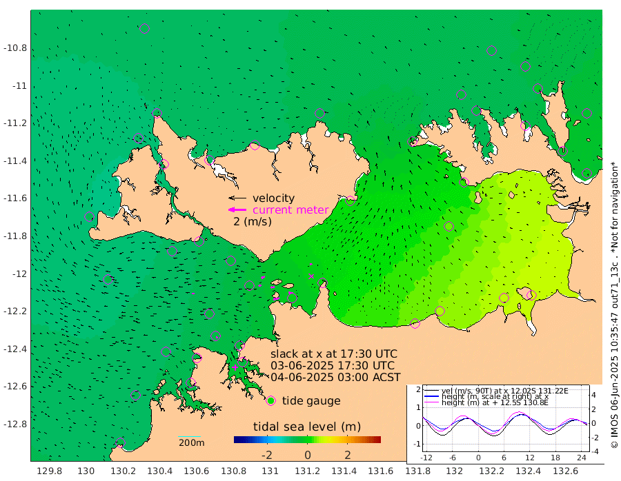 72cm/s -103T +4cm/s rms + 6cm/s 51T. Darwin_C1 52m 52cm/s -89T +4cm/s rms + 7cm/s -161T. Darwin_CW1 22m 35cm/s -110T +4cm/s rms + 8cm/s 61T. Darwin_CW2 34m 24cm/s -111T +3cm/s rms + 9cm/s 98T. Darwin_CW3 22m 40cm/s -92T +5cm/s rms + 7cm/s 88T. Darwin_C3 56m 42cm/s -116T +2cm/s rms + 9cm/s -126T. Darwin_CTbW 22m 29cm/s -90T +1cm/s rms + 1cm/s -47T. DARBGF 30m 24cm/s -62T +4cm/s rms + 3cm/s 80T. NRSDAR 19m -64cm Goodrich Bank -51cm Point Jenny -57cm Native Point -45cm Fish Reef -54cm Tapa Bay -64cm Point Fawcett (Offshore) -44cm Burge Point -60cm Munkunuwa -53cm Beagle A -45cm Parsons Bank -42cm Fenton Patches -34cm Hancox Shoal Area -41cm Nightcliff -45cm Darwin -56cm Charles Point Patches -1cm Glyde Point 55cm Chambers Bay 66cm Point Stuart 22cm Cape Hotham 42cm Christine Reef 78cm West Alligator Head 100cm East Field Island 32cm Two Hills Bay 23cm Camp Point -58cm Medina Inlet South -76cm South Barlow Point -69cm St. Asaph Bay -65cm Cape Van Dieman -71cm Snake Bay -56cm Cache Point -46cm Point Jahleel (Off) -26cm Cape Don -43cm Port Essington -43cm Smith Point - West -40cm NW Peacock Island -45cm North Of Jones Shoal -15cm Peacock Island -25cm Point David -41cm D'urville Point -19cm Copeland Island -27cm One Tree Point