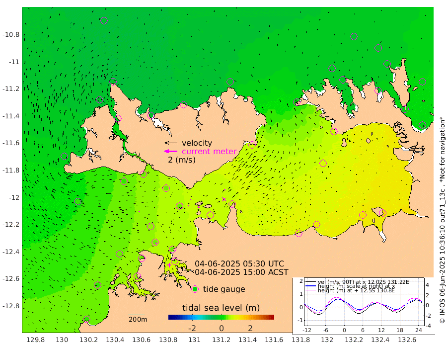 3cm/s -99T +4cm/s rms + 6cm/s 51T. Darwin_C1 52m 3cm/s 119T +4cm/s rms + 7cm/s -161T. Darwin_CW1 22m 8cm/s 82T +4cm/s rms + 8cm/s 61T. Darwin_CW2 34m 14cm/s 27T +3cm/s rms + 9cm/s 98T. Darwin_CW3 22m 27cm/s 93T +5cm/s rms + 7cm/s 88T. Darwin_C3 56m 3cm/s -130T +2cm/s rms + 9cm/s -126T. Darwin_CTbW 22m 22cm/s -81T +1cm/s rms + 1cm/s -47T. DARBGF 30m 23cm/s -53T +4cm/s rms + 3cm/s 80T. NRSDAR 19m -27cm Goodrich Bank 30cm Point Jenny 30cm Native Point 39cm Fish Reef 36cm Tapa Bay -8cm Point Fawcett (Offshore) 53cm Burge Point 24cm Munkunuwa 23cm Beagle A 41cm Parsons Bank 50cm Fenton Patches 45cm Hancox Shoal Area 42cm Nightcliff 58cm Darwin 44cm Charles Point Patches 75cm Glyde Point 101cm Chambers Bay 115cm Point Stuart 75cm Cape Hotham 89cm Christine Reef 129cm West Alligator Head 147cm East Field Island 80cm Two Hills Bay 80cm Camp Point 35cm Medina Inlet South -19cm South Barlow Point -25cm St. Asaph Bay -29cm Cape Van Dieman -30cm Snake Bay -23cm Cache Point -13cm Point Jahleel (Off) 17cm Cape Don -12cm Port Essington -18cm Smith Point - West -17cm NW Peacock Island -26cm North Of Jones Shoal -9cm Peacock Island -6cm Point David -18cm D'urville Point -5cm Copeland Island -6cm One Tree Point
