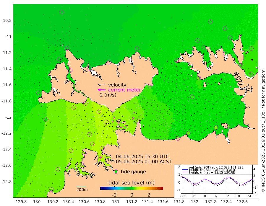 59cm/s 79T +4cm/s rms + 6cm/s 51T. Darwin_C1 52m 33cm/s 90T +4cm/s rms + 7cm/s -161T. Darwin_CW1 22m 36cm/s 72T +4cm/s rms + 8cm/s 61T. Darwin_CW2 34m 27cm/s 51T +3cm/s rms + 9cm/s 98T. Darwin_CW3 22m 53cm/s 88T +5cm/s rms + 7cm/s 88T. Darwin_C3 56m 32cm/s 65T +2cm/s rms + 9cm/s -126T. Darwin_CTbW 22m 15cm/s 87T +1cm/s rms + 1cm/s -47T. DARBGF 30m 9cm/s 106T +4cm/s rms + 3cm/s 80T. NRSDAR 19m -22cm Goodrich Bank 41cm Point Jenny 37cm Native Point 49cm Fish Reef 50cm Tapa Bay 21cm Point Fawcett (Offshore) 41cm Burge Point 46cm Munkunuwa 22cm Beagle A 56cm Parsons Bank 37cm Fenton Patches 57cm Hancox Shoal Area 58cm Nightcliff 57cm Darwin 48cm Charles Point Patches 43cm Glyde Point 49cm Chambers Bay 44cm Point Stuart 46cm Cape Hotham 29cm Christine Reef 48cm West Alligator Head 37cm East Field Island 41cm Two Hills Bay 24cm Camp Point 47cm Medina Inlet South 4cm South Barlow Point -3cm St. Asaph Bay -18cm Cape Van Dieman -16cm Snake Bay -12cm Cache Point -3cm Point Jahleel (Off) 20cm Cape Don 6cm Port Essington 8cm Smith Point - West 7cm NW Peacock Island 4cm North Of Jones Shoal 3cm Peacock Island 27cm Point David 12cm D'urville Point 31cm Copeland Island 25cm One Tree Point