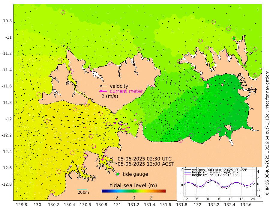 88cm/s 78T +4cm/s rms + 6cm/s 51T. Darwin_C1 52m 53cm/s 91T +4cm/s rms + 7cm/s -161T. Darwin_CW1 22m 54cm/s 73T +4cm/s rms + 8cm/s 61T. Darwin_CW2 34m 37cm/s 50T +3cm/s rms + 9cm/s 98T. Darwin_CW3 22m 75cm/s 89T +5cm/s rms + 7cm/s 88T. Darwin_C3 56m 54cm/s 65T +2cm/s rms + 9cm/s -126T. Darwin_CTbW 22m 35cm/s 88T +1cm/s rms + 1cm/s -47T. DARBGF 30m 32cm/s 116T +4cm/s rms + 3cm/s 80T. NRSDAR 19m 47cm Goodrich Bank 102cm Point Jenny 103cm Native Point 108cm Fish Reef 104cm Tapa Bay 84cm Point Fawcett (Offshore) 107cm Burge Point 100cm Munkunuwa 104cm Beagle A 103cm Parsons Bank 110cm Fenton Patches 95cm Hancox Shoal Area 110cm Nightcliff 110cm Darwin 109cm Charles Point Patches 68cm Glyde Point 32cm Chambers Bay 18cm Point Stuart 48cm Cape Hotham 31cm Christine Reef 15cm West Alligator Head -1cm East Field Island 37cm Two Hills Bay 32cm Camp Point 109cm Medina Inlet South 82cm South Barlow Point 68cm St. Asaph Bay 50cm Cape Van Dieman 56cm Snake Bay 50cm Cache Point 49cm Point Jahleel (Off) 55cm Cape Don 50cm Port Essington 54cm Smith Point - West 49cm NW Peacock Island 48cm North Of Jones Shoal 17cm Peacock Island 38cm Point David 52cm D'urville Point 35cm Copeland Island 43cm One Tree Point