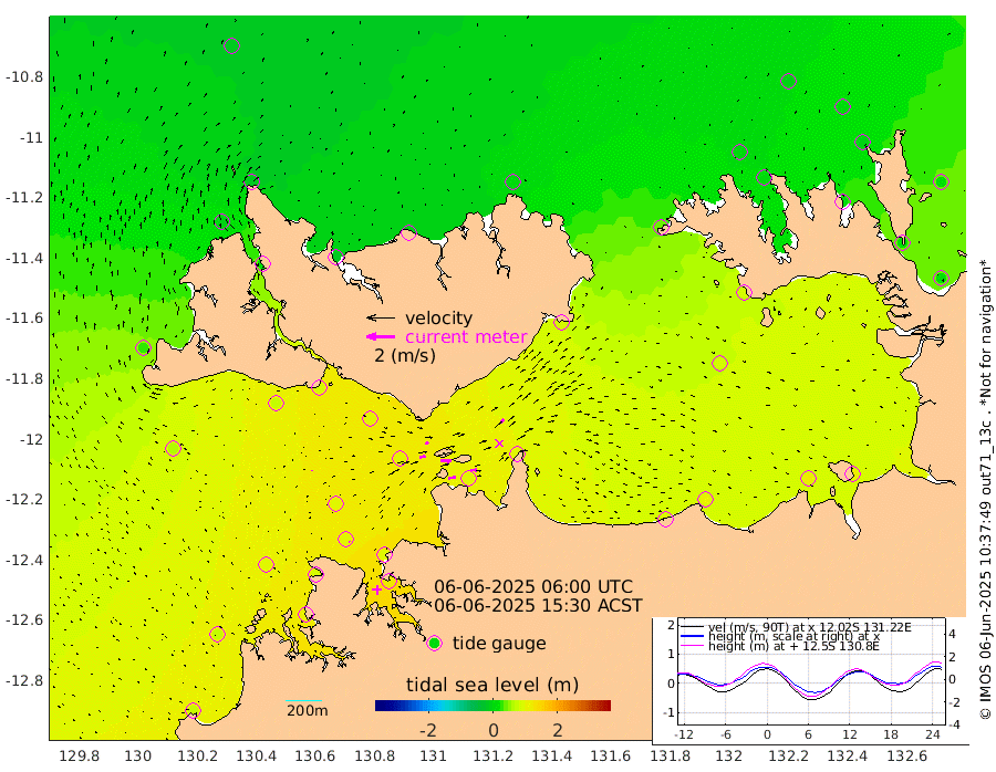 52cm/s 78T +4cm/s rms + 6cm/s 51T. Darwin_C1 52m 49cm/s 92T +4cm/s rms + 7cm/s -161T. Darwin_CW1 22m 41cm/s 74T +4cm/s rms + 8cm/s 61T. Darwin_CW2 34m 35cm/s 43T +3cm/s rms + 9cm/s 98T. Darwin_CW3 22m 74cm/s 90T +5cm/s rms + 7cm/s 88T. Darwin_C3 56m 26cm/s 66T +2cm/s rms + 9cm/s -126T. Darwin_CTbW 22m 4cm/s 6T +1cm/s rms + 1cm/s -47T. DARBGF 30m 6cm/s -15T +4cm/s rms + 3cm/s 80T. NRSDAR 19m -17cm Goodrich Bank 76cm Point Jenny 75cm Native Point 91cm Fish Reef 86cm Tapa Bay 27cm Point Fawcett (Offshore) 103cm Burge Point 75cm Munkunuwa 66cm Beagle A 96cm Parsons Bank 99cm Fenton Patches 94cm Hancox Shoal Area 97cm Nightcliff 116cm Darwin 100cm Charles Point Patches 101cm Glyde Point 97cm Chambers Bay 105cm Point Stuart 90cm Cape Hotham 84cm Christine Reef 113cm West Alligator Head 117cm East Field Island 84cm Two Hills Bay 82cm Camp Point 90cm Medina Inlet South 17cm South Barlow Point 0cm St. Asaph Bay -16cm Cape Van Dieman -12cm Snake Bay -10cm Cache Point 1cm Point Jahleel (Off) 38cm Cape Don 11cm Port Essington 6cm Smith Point - West 5cm NW Peacock Island -6cm North Of Jones Shoal 0cm Peacock Island 20cm Point David 9cm D'urville Point 22cm Copeland Island 21cm One Tree Point
