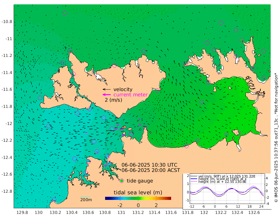 86cm/s -101T +4cm/s rms + 6cm/s 51T. Darwin_C1 52m 61cm/s -90T +4cm/s rms + 7cm/s -161T. Darwin_CW1 22m 66cm/s -107T +4cm/s rms + 8cm/s 61T. Darwin_CW2 34m 31cm/s -130T +3cm/s rms + 9cm/s 98T. Darwin_CW3 22m 92cm/s -91T +5cm/s rms + 7cm/s 88T. Darwin_C3 56m 58cm/s -115T +2cm/s rms + 9cm/s -126T. Darwin_CTbW 22m 44cm/s -93T +1cm/s rms + 1cm/s -47T. DARBGF 30m 37cm/s -62T +4cm/s rms + 3cm/s 80T. NRSDAR 19m -44cm Goodrich Bank -137cm Point Jenny -134cm Native Point -146cm Fish Reef -142cm Tapa Bay -110cm Point Fawcett (Offshore) -144cm Burge Point -132cm Munkunuwa -134cm Beagle A -136cm Parsons Bank -146cm Fenton Patches -133cm Hancox Shoal Area -155cm Nightcliff -146cm Darwin -143cm Charles Point Patches -98cm Glyde Point -67cm Chambers Bay -51cm Point Stuart -83cm Cape Hotham -58cm Christine Reef -50cm West Alligator Head -32cm East Field Island -65cm Two Hills Bay -56cm Camp Point -142cm Medina Inlet South -92cm South Barlow Point -80cm St. Asaph Bay -49cm Cape Van Dieman -54cm Snake Bay -54cm Cache Point -56cm Point Jahleel (Off) -68cm Cape Don -54cm Port Essington -60cm Smith Point - West -53cm NW Peacock Island -56cm North Of Jones Shoal -20cm Peacock Island -46cm Point David -57cm D'urville Point -46cm Copeland Island -53cm One Tree Point