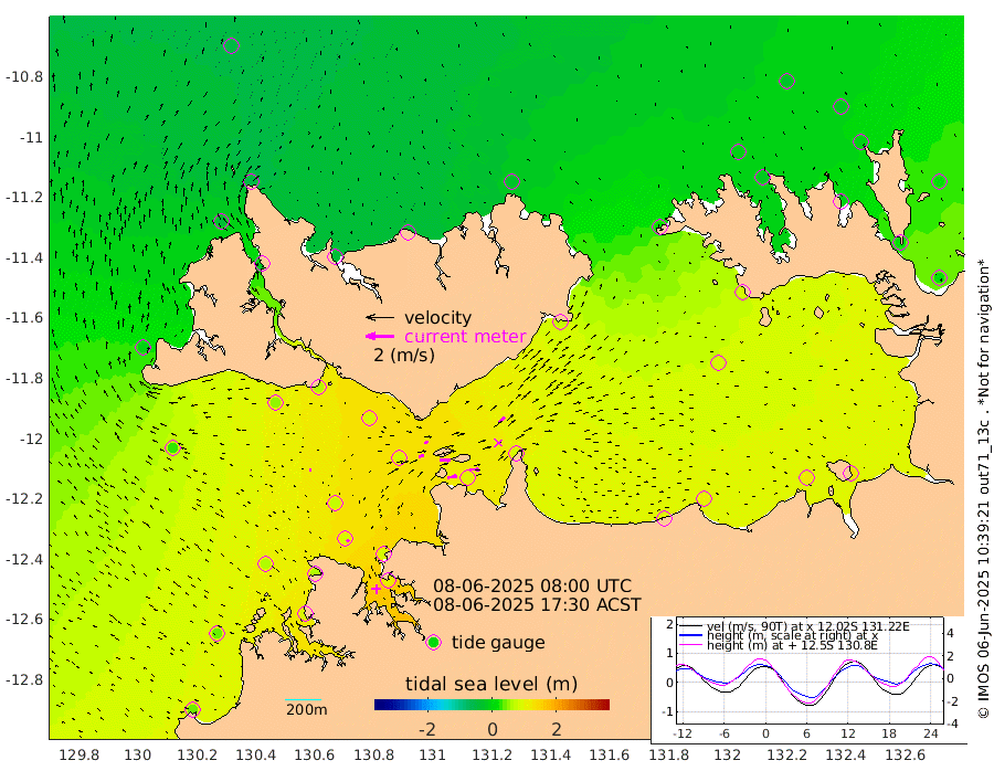 67cm/s 79T +4cm/s rms + 6cm/s 51T. Darwin_C1 52m 73cm/s 92T +4cm/s rms + 7cm/s -161T. Darwin_CW1 22m 39cm/s 71T +4cm/s rms + 8cm/s 61T. Darwin_CW2 34m 48cm/s 42T +3cm/s rms + 9cm/s 98T. Darwin_CW3 22m 76cm/s 90T +5cm/s rms + 7cm/s 88T. Darwin_C3 56m 28cm/s 66T +2cm/s rms + 9cm/s -126T. Darwin_CTbW 22m 14cm/s -71T +1cm/s rms + 1cm/s -47T. DARBGF 30m 20cm/s -47T +4cm/s rms + 3cm/s 80T. NRSDAR 19m -50cm Goodrich Bank 44cm Point Jenny 42cm Native Point 64cm Fish Reef 60cm Tapa Bay -10cm Point Fawcett (Offshore) 80cm Burge Point 53cm Munkunuwa 29cm Beagle A 82cm Parsons Bank 72cm Fenton Patches 80cm Hancox Shoal Area 79cm Nightcliff 103cm Darwin 80cm Charles Point Patches 92cm Glyde Point 92cm Chambers Bay 108cm Point Stuart 86cm Cape Hotham 79cm Christine Reef 117cm West Alligator Head 125cm East Field Island 79cm Two Hills Bay 78cm Camp Point 67cm Medina Inlet South -15cm South Barlow Point -36cm St. Asaph Bay -49cm Cape Van Dieman -42cm Snake Bay -44cm Cache Point -27cm Point Jahleel (Off) 21cm Cape Don -10cm Port Essington -17cm Smith Point - West -15cm NW Peacock Island -27cm North Of Jones Shoal -7cm Peacock Island 14cm Point David -10cm D'urville Point 18cm Copeland Island 13cm One Tree Point