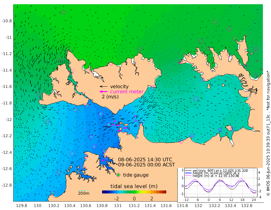 113cm/s -101T +4cm/s rms + 6cm/s 51T. Darwin_C1 52m 122cm/s -92T +4cm/s rms + 7cm/s -161T. Darwin_CW1 22m 56cm/s -105T +4cm/s rms + 8cm/s 61T. Darwin_CW2 34m 67cm/s -138T +3cm/s rms + 9cm/s 98T. Darwin_CW3 22m 114cm/s -90T +5cm/s rms + 7cm/s 88T. Darwin_C3 56m 56cm/s -115T +2cm/s rms + 9cm/s -126T. Darwin_CTbW 22m 8cm/s 157T +1cm/s rms + 1cm/s -47T. DARBGF 30m 14cm/s 145T +4cm/s rms + 3cm/s 80T. NRSDAR 19m 0cm Goodrich Bank -132cm Point Jenny -130cm Native Point -156cm Fish Reef -153cm Tapa Bay -70cm Point Fawcett (Offshore) -178cm Burge Point -134cm Munkunuwa -120cm Beagle A -165cm Parsons Bank -169cm Fenton Patches -167cm Hancox Shoal Area -179cm Nightcliff -200cm Darwin -177cm Charles Point Patches -170cm Glyde Point -161cm Chambers Bay -174cm Point Stuart -161cm Cape Hotham -146cm Christine Reef -188cm West Alligator Head -195cm East Field Island -146cm Two Hills Bay -143cm Camp Point -159cm Medina Inlet South -51cm South Barlow Point -29cm St. Asaph Bay -1cm Cape Van Dieman -11cm Snake Bay -11cm Cache Point -28cm Point Jahleel (Off) -75cm Cape Don -33cm Port Essington -28cm Smith Point - West -27cm NW Peacock Island -22cm North Of Jones Shoal -9cm Peacock Island -46cm Point David -30cm D'urville Point -47cm Copeland Island -51cm One Tree Point