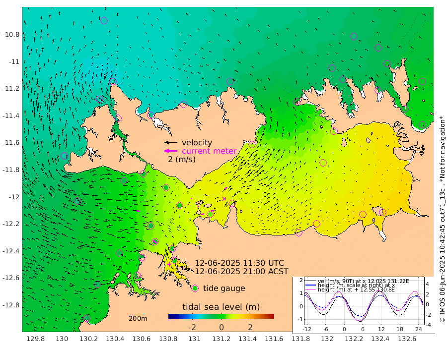 45cm/s 82T +4cm/s rms + 6cm/s 51T. Darwin_C1 52m 46cm/s 91T +4cm/s rms + 7cm/s -161T. Darwin_CW1 22m 10cm/s 44T +4cm/s rms + 8cm/s 61T. Darwin_CW2 34m 49cm/s 43T +3cm/s rms + 9cm/s 98T. Darwin_CW3 22m 24cm/s 92T +5cm/s rms + 7cm/s 88T. Darwin_C3 56m 16cm/s 66T +2cm/s rms + 9cm/s -126T. Darwin_CTbW 22m 55cm/s -85T +1cm/s rms + 1cm/s -47T. DARBGF 30m 68cm/s -55T +4cm/s rms + 3cm/s 80T. NRSDAR 19m -119cm Goodrich Bank -71cm Point Jenny -74cm Native Point -54cm Fish Reef -50cm Tapa Bay -114cm Point Fawcett (Offshore) -38cm Burge Point -54cm Munkunuwa -93cm Beagle A -15cm Parsons Bank -45cm Fenton Patches -3cm Hancox Shoal Area -15cm Nightcliff 1cm Darwin -33cm Charles Point Patches 36cm Glyde Point 94cm Chambers Bay 118cm Point Stuart 57cm Cape Hotham 71cm Christine Reef 136cm West Alligator Head 161cm East Field Island 67cm Two Hills Bay 57cm Camp Point -45cm Medina Inlet South -113cm South Barlow Point -126cm St. Asaph Bay -121cm Cape Van Dieman -112cm Snake Bay -115cm Cache Point -87cm Point Jahleel (Off) -32cm Cape Don -68cm Port Essington -74cm Smith Point - West -66cm NW Peacock Island -79cm North Of Jones Shoal -24cm Peacock Island -16cm Point David -63cm D'urville Point -7cm Copeland Island -22cm One Tree Point