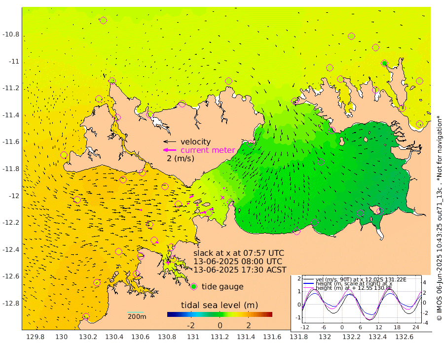 99cm/s 79T +4cm/s rms + 6cm/s 51T. Darwin_C1 52m 60cm/s 82T +4cm/s rms + 7cm/s -161T. Darwin_CW1 22m 35cm/s 76T +4cm/s rms + 8cm/s 61T. Darwin_CW2 34m 19cm/s 69T +3cm/s rms + 9cm/s 98T. Darwin_CW3 22m 32cm/s 87T +5cm/s rms + 7cm/s 88T. Darwin_C3 56m 70cm/s 62T +2cm/s rms + 9cm/s -126T. Darwin_CTbW 22m 43cm/s 92T +1cm/s rms + 1cm/s -47T. DARBGF 30m 41cm/s 121T +4cm/s rms + 3cm/s 80T. NRSDAR 19m 59cm Goodrich Bank 120cm Point Jenny 124cm Native Point 116cm Fish Reef 130cm Tapa Bay 95cm Point Fawcett (Offshore) 128cm Burge Point 126cm Munkunuwa 112cm Beagle A 129cm Parsons Bank 122cm Fenton Patches 116cm Hancox Shoal Area 121cm Nightcliff 129cm Darwin 131cm Charles Point Patches 64cm Glyde Point -17cm Chambers Bay -25cm Point Stuart 36cm Cape Hotham -8cm Christine Reef -40cm West Alligator Head -71cm East Field Island 8cm Two Hills Bay 19cm Camp Point 124cm Medina Inlet South 99cm South Barlow Point 80cm St. Asaph Bay 67cm Cape Van Dieman 75cm Snake Bay 60cm Cache Point 58cm Point Jahleel (Off) 58cm Cape Don 68cm Port Essington 68cm Smith Point - West 69cm NW Peacock Island 56cm North Of Jones Shoal 22cm Peacock Island 85cm Point David 75cm D'urville Point 81cm Copeland Island 75cm One Tree Point