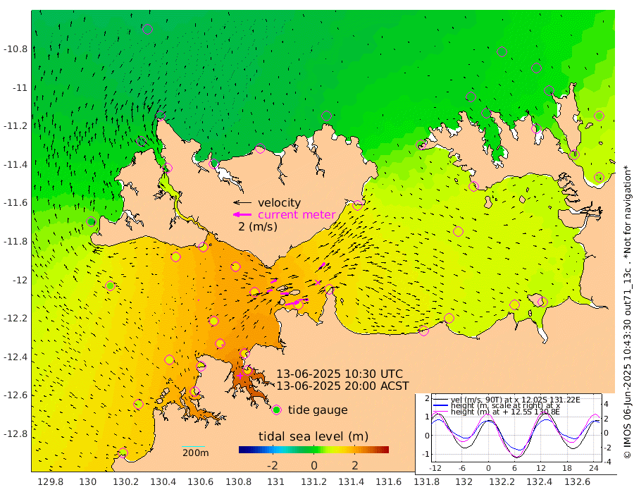 153cm/s 78T +4cm/s rms + 6cm/s 51T. Darwin_C1 52m 102cm/s 92T +4cm/s rms + 7cm/s -161T. Darwin_CW1 22m 58cm/s 72T +4cm/s rms + 8cm/s 61T. Darwin_CW2 34m 99cm/s 42T +3cm/s rms + 9cm/s 98T. Darwin_CW3 22m 93cm/s 90T +5cm/s rms + 7cm/s 88T. Darwin_C3 56m 72cm/s 65T +2cm/s rms + 9cm/s -126T. Darwin_CTbW 22m 6cm/s -49T +1cm/s rms + 1cm/s -47T. DARBGF 30m 11cm/s -17T +4cm/s rms + 3cm/s 80T. NRSDAR 19m -59cm Goodrich Bank 70cm Point Jenny 70cm Native Point 81cm Fish Reef 101cm Tapa Bay -7cm Point Fawcett (Offshore) 109cm Burge Point 90cm Munkunuwa 40cm Beagle A 129cm Parsons Bank 100cm Fenton Patches 133cm Hancox Shoal Area 132cm Nightcliff 146cm Darwin 115cm Charles Point Patches 115cm Glyde Point 105cm Chambers Bay 112cm Point Stuart 107cm Cape Hotham 90cm Christine Reef 120cm West Alligator Head 117cm East Field Island 90cm Two Hills Bay 90cm Camp Point 97cm Medina Inlet South -8cm South Barlow Point -38cm St. Asaph Bay -55cm Cape Van Dieman -42cm Snake Bay -53cm Cache Point -27cm Point Jahleel (Off) 28cm Cape Don -6cm Port Essington -9cm Smith Point - West -4cm NW Peacock Island -26cm North Of Jones Shoal -5cm Peacock Island 49cm Point David 4cm D'urville Point 54cm Copeland Island 37cm One Tree Point