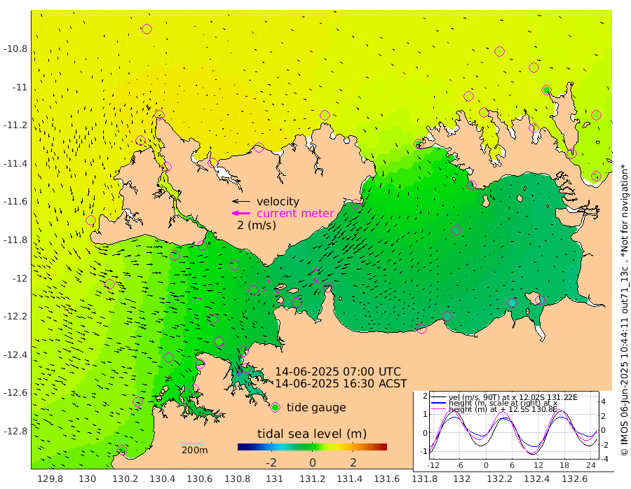 40cm/s -100T +4cm/s rms + 6cm/s 51T. Darwin_C1 52m 32cm/s -93T +4cm/s rms + 7cm/s -161T. Darwin_CW1 22m 11cm/s -109T +4cm/s rms + 8cm/s 61T. Darwin_CW2 34m 50cm/s -138T +3cm/s rms + 9cm/s 98T. Darwin_CW3 22m 33cm/s -90T +5cm/s rms + 7cm/s 88T. Darwin_C3 56m 12cm/s -112T +2cm/s rms + 9cm/s -126T. Darwin_CTbW 22m 35cm/s 98T +1cm/s rms + 1cm/s -47T. DARBGF 30m 37cm/s 132T +4cm/s rms + 3cm/s 80T. NRSDAR 19m 92cm Goodrich Bank 34cm Point Jenny 38cm Native Point 25cm Fish Reef 24cm Tapa Bay 74cm Point Fawcett (Offshore) 14cm Burge Point 24cm Munkunuwa 47cm Beagle A 7cm Parsons Bank 13cm Fenton Patches -6cm Hancox Shoal Area -11cm Nightcliff -3cm Darwin 23cm Charles Point Patches -29cm Glyde Point -89cm Chambers Bay -93cm Point Stuart -43cm Cape Hotham -74cm Christine Reef -114cm West Alligator Head -134cm East Field Island -52cm Two Hills Bay -41cm Camp Point 22cm Medina Inlet South 81cm South Barlow Point 85cm St. Asaph Bay 96cm Cape Van Dieman 96cm Snake Bay 88cm Cache Point 68cm Point Jahleel (Off) 33cm Cape Don 71cm Port Essington 68cm Smith Point - West 70cm NW Peacock Island 71cm North Of Jones Shoal 24cm Peacock Island 60cm Point David 70cm D'urville Point 53cm Copeland Island 56cm One Tree Point
