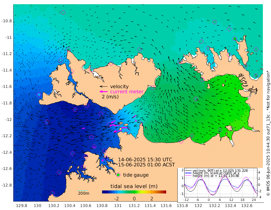 225cm/s -102T +4cm/s rms + 6cm/s 51T. Darwin_C1 52m 157cm/s -89T +4cm/s rms + 7cm/s -161T. Darwin_CW1 22m 121cm/s -108T +4cm/s rms + 8cm/s 61T. Darwin_CW2 34m 94cm/s -127T +3cm/s rms + 9cm/s 98T. Darwin_CW3 22m 157cm/s -91T +5cm/s rms + 7cm/s 88T. Darwin_C3 56m 128cm/s -116T +2cm/s rms + 9cm/s -126T. Darwin_CTbW 22m 67cm/s -94T +1cm/s rms + 1cm/s -47T. DARBGF 30m 51cm/s -65T +4cm/s rms + 3cm/s 80T. NRSDAR 19m -104cm Goodrich Bank -265cm Point Jenny -268cm Native Point -262cm Fish Reef -282cm Tapa Bay -195cm Point Fawcett (Offshore) -290cm Burge Point -267cm Munkunuwa -248cm Beagle A -273cm Parsons Bank -280cm Fenton Patches -258cm Hancox Shoal Area -277cm Nightcliff -290cm Darwin -289cm Charles Point Patches -178cm Glyde Point -72cm Chambers Bay -50cm Point Stuart -126cm Cape Hotham -86cm Christine Reef -40cm West Alligator Head -1cm East Field Island -83cm Two Hills Bay -98cm Camp Point -275cm Medina Inlet South -185cm South Barlow Point -155cm St. Asaph Bay -111cm Cape Van Dieman -117cm Snake Bay -107cm Cache Point -106cm Point Jahleel (Off) -121cm Cape Don -108cm Port Essington -111cm Smith Point - West -103cm NW Peacock Island -91cm North Of Jones Shoal -32cm Peacock Island -95cm Point David -109cm D'urville Point -90cm Copeland Island -95cm One Tree Point