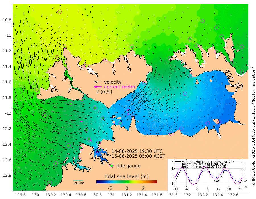 34cm/s -101T +4cm/s rms + 6cm/s 51T. Darwin_C1 52m 28cm/s -97T +4cm/s rms + 7cm/s -161T. Darwin_CW1 22m 2cm/s 48T +4cm/s rms + 8cm/s 61T. Darwin_CW2 34m 64cm/s -142T +3cm/s rms + 9cm/s 98T. Darwin_CW3 22m 31cm/s -87T +5cm/s rms + 7cm/s 88T. Darwin_C3 56m 8cm/s -116T +2cm/s rms + 9cm/s -126T. Darwin_CTbW 22m 64cm/s 96T +1cm/s rms + 1cm/s -47T. DARBGF 30m 72cm/s 127T +4cm/s rms + 3cm/s 80T. NRSDAR 19m 61cm Goodrich Bank 8cm Point Jenny 9cm Native Point 0cm Fish Reef -15cm Tapa Bay 56cm Point Fawcett (Offshore) -21cm Burge Point 20cm Munkunuwa 31cm Beagle A -32cm Parsons Bank -17cm Fenton Patches -57cm Hancox Shoal Area -41cm Nightcliff -64cm Darwin -40cm Charles Point Patches -105cm Glyde Point -179cm Chambers Bay -195cm Point Stuart -121cm Cape Hotham -153cm Christine Reef -218cm West Alligator Head -254cm East Field Island -136cm Two Hills Bay -136cm Camp Point -9cm Medina Inlet South 65cm South Barlow Point 73cm St. Asaph Bay 66cm Cape Van Dieman 59cm Snake Bay 54cm Cache Point 31cm Point Jahleel (Off) -26cm Cape Don 16cm Port Essington 24cm Smith Point - West 14cm NW Peacock Island 30cm North Of Jones Shoal 8cm Peacock Island -31cm Point David 14cm D'urville Point -35cm Copeland Island -25cm One Tree Point