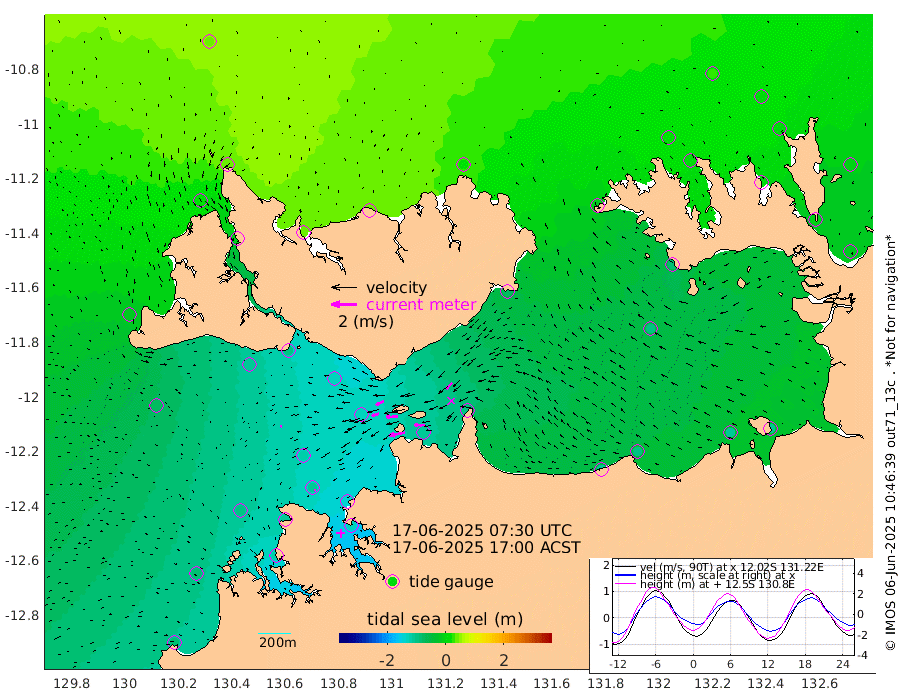 125cm/s -101T +4cm/s rms + 6cm/s 51T. Darwin_C1 52m 78cm/s -91T +4cm/s rms + 7cm/s -161T. Darwin_CW1 22m 58cm/s -107T +4cm/s rms + 8cm/s 61T. Darwin_CW2 34m 65cm/s -136T +3cm/s rms + 9cm/s 98T. Darwin_CW3 22m 89cm/s -91T +5cm/s rms + 7cm/s 88T. Darwin_C3 56m 70cm/s -115T +2cm/s rms + 9cm/s -126T. Darwin_CTbW 22m 10cm/s -110T +1cm/s rms + 1cm/s -47T. DARBGF 30m 9cm/s -107T +4cm/s rms + 3cm/s 80T. NRSDAR 19m 44cm Goodrich Bank -89cm Point Jenny -87cm Native Point -95cm Fish Reef -108cm Tapa Bay -15cm Point Fawcett (Offshore) -117cm Burge Point -103cm Munkunuwa -71cm Beagle A -124cm Parsons Bank -118cm Fenton Patches -128cm Hancox Shoal Area -139cm Nightcliff -130cm Darwin -101cm Charles Point Patches -102cm Glyde Point -102cm Chambers Bay -96cm Point Stuart -96cm Cape Hotham -92cm Christine Reef -108cm West Alligator Head -101cm East Field Island -80cm Two Hills Bay -69cm Camp Point -100cm Medina Inlet South -7cm South Barlow Point 14cm St. Asaph Bay 41cm Cape Van Dieman 36cm Snake Bay 37cm Cache Point 15cm Point Jahleel (Off) -21cm Cape Don 15cm Port Essington 7cm Smith Point - West 10cm NW Peacock Island 26cm North Of Jones Shoal 7cm Peacock Island -10cm Point David 4cm D'urville Point -15cm Copeland Island -4cm One Tree Point