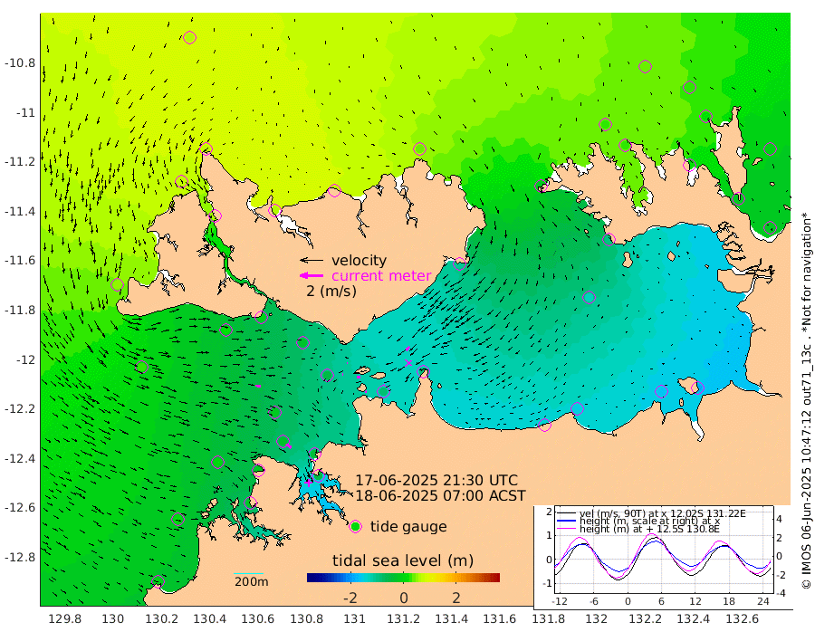 16cm/s -104T +4cm/s rms + 6cm/s 51T. Darwin_C1 52m 3cm/s -101T +4cm/s rms + 7cm/s -161T. Darwin_CW1 22m 4cm/s -104T +4cm/s rms + 8cm/s 61T. Darwin_CW2 34m 41cm/s -141T +3cm/s rms + 9cm/s 98T. Darwin_CW3 22m 28cm/s -89T +5cm/s rms + 7cm/s 88T. Darwin_C3 56m 3cm/s -114T +2cm/s rms + 9cm/s -126T. Darwin_CTbW 22m 46cm/s 96T +1cm/s rms + 1cm/s -47T. DARBGF 30m 52cm/s 127T +4cm/s rms + 3cm/s 80T. NRSDAR 19m 65cm Goodrich Bank -2cm Point Jenny 1cm Native Point 1cm Fish Reef -16cm Tapa Bay 53cm Point Fawcett (Offshore) -22cm Burge Point 12cm Munkunuwa 25cm Beagle A -29cm Parsons Bank -16cm Fenton Patches -49cm Hancox Shoal Area -39cm Nightcliff -47cm Darwin -27cm Charles Point Patches -79cm Glyde Point -142cm Chambers Bay -148cm Point Stuart -88cm Cape Hotham -125cm Christine Reef -166cm West Alligator Head -191cm East Field Island -99cm Two Hills Bay -102cm Camp Point -6cm Medina Inlet South 62cm South Barlow Point 69cm St. Asaph Bay 68cm Cape Van Dieman 67cm Snake Bay 58cm Cache Point 39cm Point Jahleel (Off) -13cm Cape Don 25cm Port Essington 29cm Smith Point - West 23cm NW Peacock Island 38cm North Of Jones Shoal 11cm Peacock Island -14cm Point David 22cm D'urville Point -20cm Copeland Island -8cm One Tree Point
