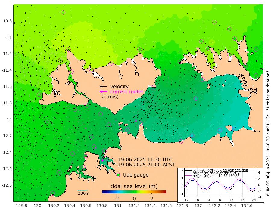14cm/s 80T +4cm/s rms + 6cm/s 51T. Darwin_C1 52m 5cm/s 75T +4cm/s rms + 7cm/s -161T. Darwin_CW1 22m 2cm/s -111T +4cm/s rms + 8cm/s 61T. Darwin_CW2 34m 18cm/s -157T +3cm/s rms + 9cm/s 98T. Darwin_CW3 22m 21cm/s -85T +5cm/s rms + 7cm/s 88T. Darwin_C3 56m 12cm/s 60T +2cm/s rms + 9cm/s -126T. Darwin_CTbW 22m 32cm/s 98T +1cm/s rms + 1cm/s -47T. DARBGF 30m 35cm/s 126T +4cm/s rms + 3cm/s 80T. NRSDAR 19m 44cm Goodrich Bank -13cm Point Jenny -12cm Native Point -17cm Fish Reef -21cm Tapa Bay 30cm Point Fawcett (Offshore) -35cm Burge Point 0cm Munkunuwa -14cm Beagle A -23cm Parsons Bank -44cm Fenton Patches -41cm Hancox Shoal Area -50cm Nightcliff -42cm Darwin -21cm Charles Point Patches -72cm Glyde Point -119cm Chambers Bay -127cm Point Stuart -81cm Cape Hotham -109cm Christine Reef -145cm West Alligator Head -172cm East Field Island -85cm Two Hills Bay -86cm Camp Point -14cm Medina Inlet South 39cm South Barlow Point 41cm St. Asaph Bay 48cm Cape Van Dieman 46cm Snake Bay 39cm Cache Point 24cm Point Jahleel (Off) -3cm Cape Don 33cm Port Essington 31cm Smith Point - West 30cm NW Peacock Island 36cm North Of Jones Shoal 12cm Peacock Island 19cm Point David 31cm D'urville Point 16cm Copeland Island 20cm One Tree Point