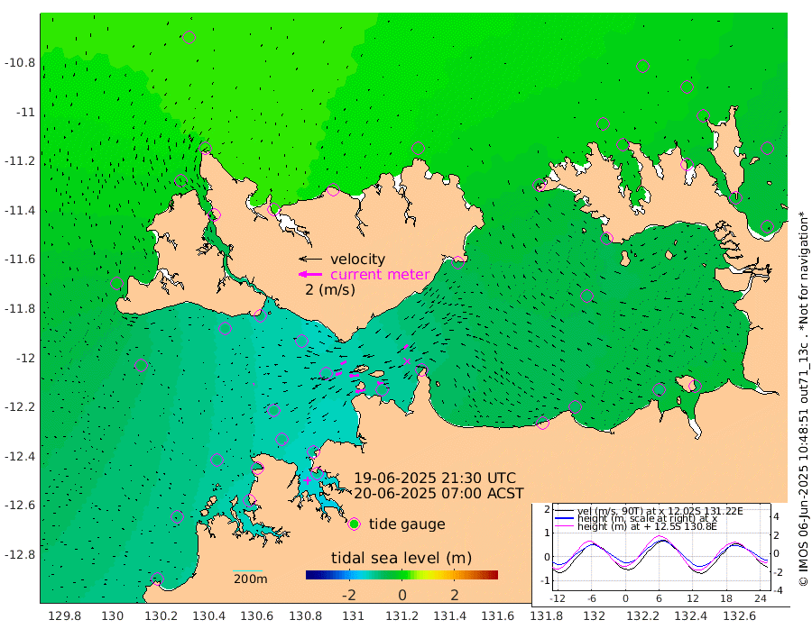 89cm/s -102T +4cm/s rms + 6cm/s 51T. Darwin_C1 52m 53cm/s -89T +4cm/s rms + 7cm/s -161T. Darwin_CW1 22m 54cm/s -107T +4cm/s rms + 8cm/s 61T. Darwin_CW2 34m 45cm/s -131T +3cm/s rms + 9cm/s 98T. Darwin_CW3 22m 82cm/s -91T +5cm/s rms + 7cm/s 88T. Darwin_C3 56m 53cm/s -115T +2cm/s rms + 9cm/s -126T. Darwin_CTbW 22m 8cm/s -114T +1cm/s rms + 1cm/s -47T. DARBGF 30m 6cm/s -125T +4cm/s rms + 3cm/s 80T. NRSDAR 19m 30cm Goodrich Bank -81cm Point Jenny -80cm Native Point -80cm Fish Reef -93cm Tapa Bay -19cm Point Fawcett (Offshore) -101cm Burge Point -89cm Munkunuwa -52cm Beagle A -108cm Parsons Bank -89cm Fenton Patches -105cm Hancox Shoal Area -105cm Nightcliff -112cm Darwin -93cm Charles Point Patches -85cm Glyde Point -80cm Chambers Bay -76cm Point Stuart -74cm Cape Hotham -73cm Christine Reef -82cm West Alligator Head -72cm East Field Island -64cm Two Hills Bay -61cm Camp Point -88cm Medina Inlet South -11cm South Barlow Point 9cm St. Asaph Bay 26cm Cape Van Dieman 23cm Snake Bay 24cm Cache Point 10cm Point Jahleel (Off) -31cm Cape Don -3cm Port Essington -2cm Smith Point - West -2cm NW Peacock Island 14cm North Of Jones Shoal 3cm Peacock Island -28cm Point David -8cm D'urville Point -31cm Copeland Island -23cm One Tree Point
