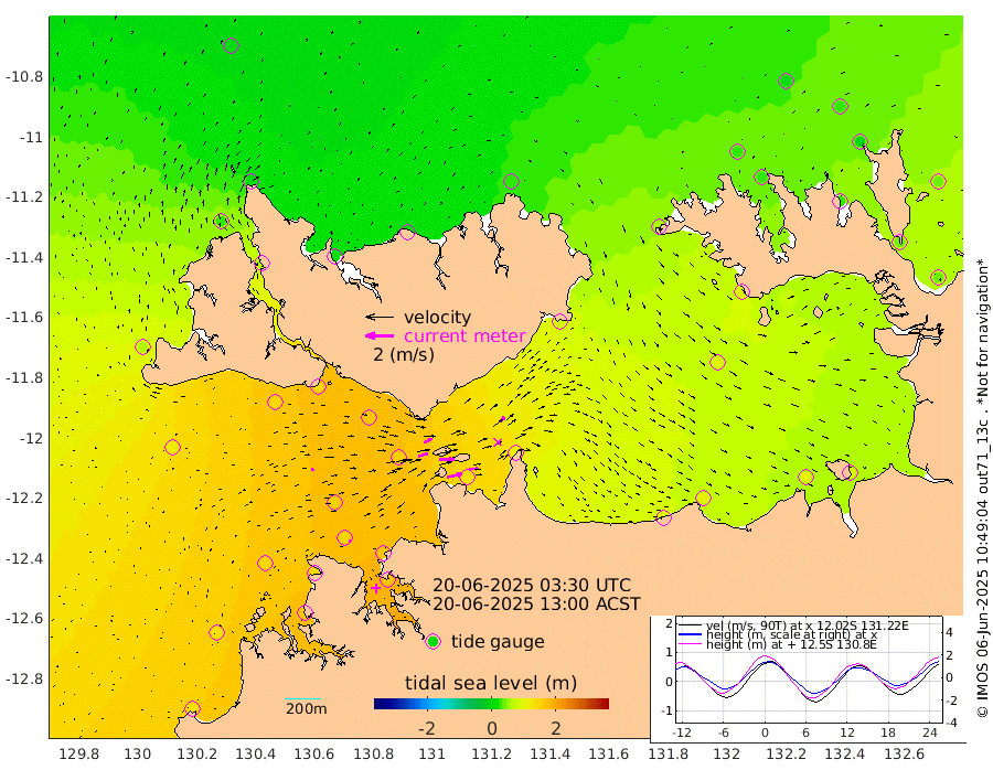107cm/s 78T +4cm/s rms + 6cm/s 51T. Darwin_C1 52m 66cm/s 90T +4cm/s rms + 7cm/s -161T. Darwin_CW1 22m 70cm/s 72T +4cm/s rms + 8cm/s 61T. Darwin_CW2 34m 54cm/s 48T +3cm/s rms + 9cm/s 98T. Darwin_CW3 22m 104cm/s 89T +5cm/s rms + 7cm/s 88T. Darwin_C3 56m 63cm/s 65T +2cm/s rms + 9cm/s -126T. Darwin_CTbW 22m 17cm/s 75T +1cm/s rms + 1cm/s -47T. DARBGF 30m 11cm/s 90T +4cm/s rms + 3cm/s 80T. NRSDAR 19m 3cm Goodrich Bank 130cm Point Jenny 131cm Native Point 138cm Fish Reef 144cm Tapa Bay 63cm Point Fawcett (Offshore) 162cm Burge Point 137cm Munkunuwa 117cm Beagle A 158cm Parsons Bank 157cm Fenton Patches 150cm Hancox Shoal Area 162cm Nightcliff 168cm Darwin 145cm Charles Point Patches 128cm Glyde Point 103cm Chambers Bay 102cm Point Stuart 111cm Cape Hotham 98cm Christine Reef 109cm West Alligator Head 98cm East Field Island 95cm Two Hills Bay 89cm Camp Point 142cm Medina Inlet South 56cm South Barlow Point 31cm St. Asaph Bay 7cm Cape Van Dieman 15cm Snake Bay 10cm Cache Point 23cm Point Jahleel (Off) 58cm Cape Don 26cm Port Essington 28cm Smith Point - West 26cm NW Peacock Island 10cm North Of Jones Shoal 5cm Peacock Island 42cm Point David 31cm D'urville Point 42cm Copeland Island 39cm One Tree Point