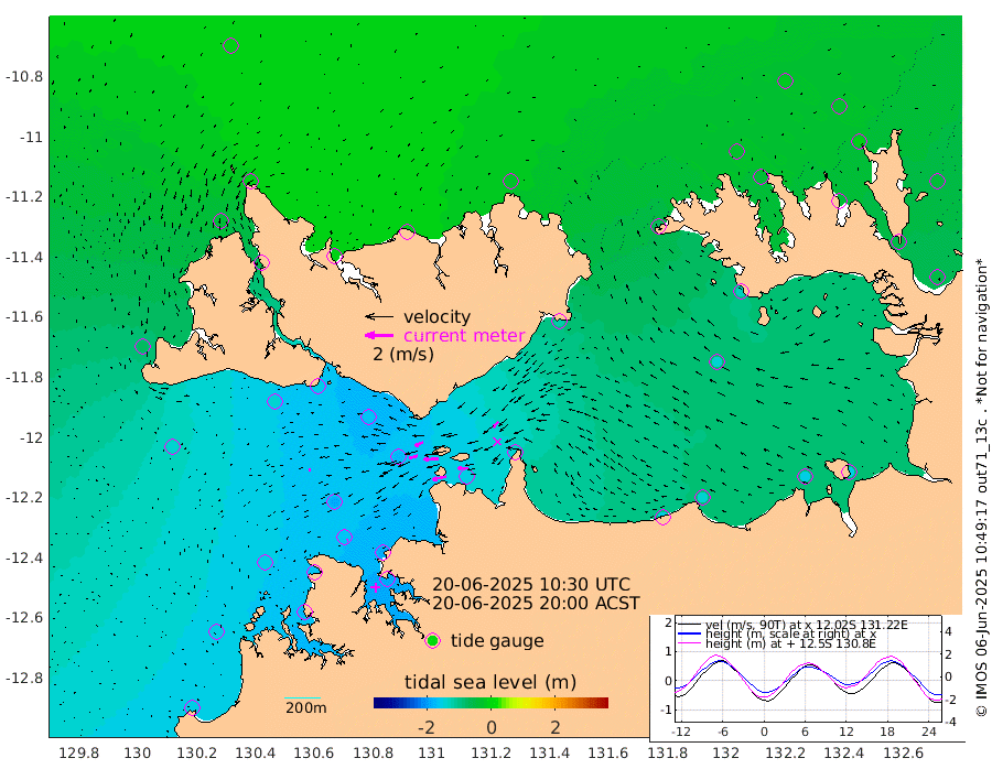 101cm/s -102T +4cm/s rms + 6cm/s 51T. Darwin_C1 52m 71cm/s -91T +4cm/s rms + 7cm/s -161T. Darwin_CW1 22m 65cm/s -107T +4cm/s rms + 8cm/s 61T. Darwin_CW2 34m 55cm/s -136T +3cm/s rms + 9cm/s 98T. Darwin_CW3 22m 102cm/s -91T +5cm/s rms + 7cm/s 88T. Darwin_C3 56m 62cm/s -116T +2cm/s rms + 9cm/s -126T. Darwin_CTbW 22m 14cm/s -111T +1cm/s rms + 1cm/s -47T. DARBGF 30m 7cm/s -103T +4cm/s rms + 3cm/s 80T. NRSDAR 19m -4cm Goodrich Bank -149cm Point Jenny -147cm Native Point -154cm Fish Reef -164cm Tapa Bay -72cm Point Fawcett (Offshore) -178cm Burge Point -140cm Munkunuwa -138cm Beagle A -168cm Parsons Bank -181cm Fenton Patches -174cm Hancox Shoal Area -187cm Nightcliff -184cm Darwin -163cm Charles Point Patches -155cm Glyde Point -148cm Chambers Bay -142cm Point Stuart -142cm Cape Hotham -139cm Christine Reef -154cm West Alligator Head -152cm East Field Island -125cm Two Hills Bay -119cm Camp Point -151cm Medina Inlet South -55cm South Barlow Point -35cm St. Asaph Bay -6cm Cape Van Dieman -10cm Snake Bay -15cm Cache Point -31cm Point Jahleel (Off) -68cm Cape Don -30cm Port Essington -36cm Smith Point - West -33cm NW Peacock Island -16cm North Of Jones Shoal -7cm Peacock Island -47cm Point David -38cm D'urville Point -50cm Copeland Island -43cm One Tree Point