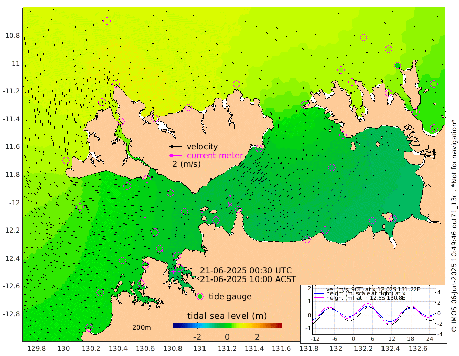 12cm/s -104T +4cm/s rms + 6cm/s 51T. Darwin_C1 52m 22cm/s -87T +4cm/s rms + 7cm/s -161T. Darwin_CW1 22m 7cm/s -110T +4cm/s rms + 8cm/s 61T. Darwin_CW2 34m 21cm/s -142T +3cm/s rms + 9cm/s 98T. Darwin_CW3 22m 25cm/s -89T +5cm/s rms + 7cm/s 88T. Darwin_C3 56m 1cm/s -65T +2cm/s rms + 9cm/s -126T. Darwin_CTbW 22m 26cm/s 96T +1cm/s rms + 1cm/s -47T. DARBGF 30m 28cm/s 128T +4cm/s rms + 3cm/s 80T. NRSDAR 19m 80cm Goodrich Bank 11cm Point Jenny 14cm Native Point 15cm Fish Reef 2cm Tapa Bay 60cm Point Fawcett (Offshore) -4cm Burge Point 11cm Munkunuwa 35cm Beagle A -6cm Parsons Bank 2cm Fenton Patches -19cm Hancox Shoal Area -17cm Nightcliff -12cm Darwin 6cm Charles Point Patches -32cm Glyde Point -71cm Chambers Bay -76cm Point Stuart -38cm Cape Hotham -64cm Christine Reef -89cm West Alligator Head -103cm East Field Island -40cm Two Hills Bay -43cm Camp Point 12cm Medina Inlet South 70cm South Barlow Point 74cm St. Asaph Bay 81cm Cape Van Dieman 84cm Snake Bay 76cm Cache Point 61cm Point Jahleel (Off) 23cm Cape Don 55cm Port Essington 57cm Smith Point - West 55cm NW Peacock Island 64cm North Of Jones Shoal 21cm Peacock Island 29cm Point David 53cm D'urville Point 24cm Copeland Island 34cm One Tree Point