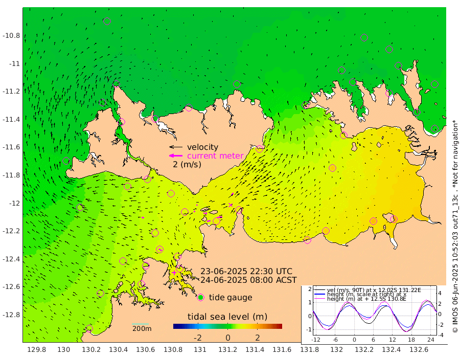 47cm/s 80T +4cm/s rms + 6cm/s 51T. Darwin_C1 52m 77cm/s 89T +4cm/s rms + 7cm/s -161T. Darwin_CW1 22m 19cm/s 73T +4cm/s rms + 8cm/s 61T. Darwin_CW2 34m 51cm/s 39T +3cm/s rms + 9cm/s 98T. Darwin_CW3 22m 56cm/s 93T +5cm/s rms + 7cm/s 88T. Darwin_C3 56m 16cm/s 70T +2cm/s rms + 9cm/s -126T. Darwin_CTbW 22m 35cm/s -78T +1cm/s rms + 1cm/s -47T. DARBGF 30m 47cm/s -53T +4cm/s rms + 3cm/s 80T. NRSDAR 19m -11cm Goodrich Bank 62cm Point Jenny 59cm Native Point 62cm Fish Reef 74cm Tapa Bay 13cm Point Fawcett (Offshore) 91cm Burge Point 46cm Munkunuwa 53cm Beagle A 73cm Parsons Bank 88cm Fenton Patches 94cm Hancox Shoal Area 98cm Nightcliff 102cm Darwin 88cm Charles Point Patches 114cm Glyde Point 155cm Chambers Bay 157cm Point Stuart 116cm Cape Hotham 150cm Christine Reef 176cm West Alligator Head 203cm East Field Island 116cm Two Hills Bay 125cm Camp Point 67cm Medina Inlet South -2cm South Barlow Point -3cm St. Asaph Bay -18cm Cape Van Dieman -18cm Snake Bay -6cm Cache Point 5cm Point Jahleel (Off) 37cm Cape Don -2cm Port Essington -3cm Smith Point - West -4cm NW Peacock Island -4cm North Of Jones Shoal -2cm Peacock Island 0cm Point David -7cm D'urville Point 2cm Copeland Island 4cm One Tree Point
