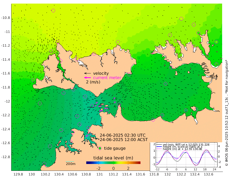 116cm/s -101T +4cm/s rms + 6cm/s 51T. Darwin_C1 52m 106cm/s -90T +4cm/s rms + 7cm/s -161T. Darwin_CW1 22m 51cm/s -108T +4cm/s rms + 8cm/s 61T. Darwin_CW2 34m 58cm/s -134T +3cm/s rms + 9cm/s 98T. Darwin_CW3 22m 80cm/s -91T +5cm/s rms + 7cm/s 88T. Darwin_C3 56m 62cm/s -115T +2cm/s rms + 9cm/s -126T. Darwin_CTbW 22m 5cm/s -132T +1cm/s rms + 1cm/s -47T. DARBGF 30m 6cm/s -128T +4cm/s rms + 3cm/s 80T. NRSDAR 19m 84cm Goodrich Bank -54cm Point Jenny -52cm Native Point -60cm Fish Reef -72cm Tapa Bay 25cm Point Fawcett (Offshore) -83cm Burge Point -78cm Munkunuwa -27cm Beagle A -88cm Parsons Bank -76cm Fenton Patches -88cm Hancox Shoal Area -92cm Nightcliff -92cm Darwin -63cm Charles Point Patches -68cm Glyde Point -62cm Chambers Bay -67cm Point Stuart -60cm Cape Hotham -56cm Christine Reef -79cm West Alligator Head -73cm East Field Island -43cm Two Hills Bay -39cm Camp Point -65cm Medina Inlet South 35cm South Barlow Point 54cm St. Asaph Bay 80cm Cape Van Dieman 81cm Snake Bay 80cm Cache Point 58cm Point Jahleel (Off) 18cm Cape Don 54cm Port Essington 53cm Smith Point - West 56cm NW Peacock Island 72cm North Of Jones Shoal 23cm Peacock Island 31cm Point David 51cm D'urville Point 25cm Copeland Island 39cm One Tree Point
