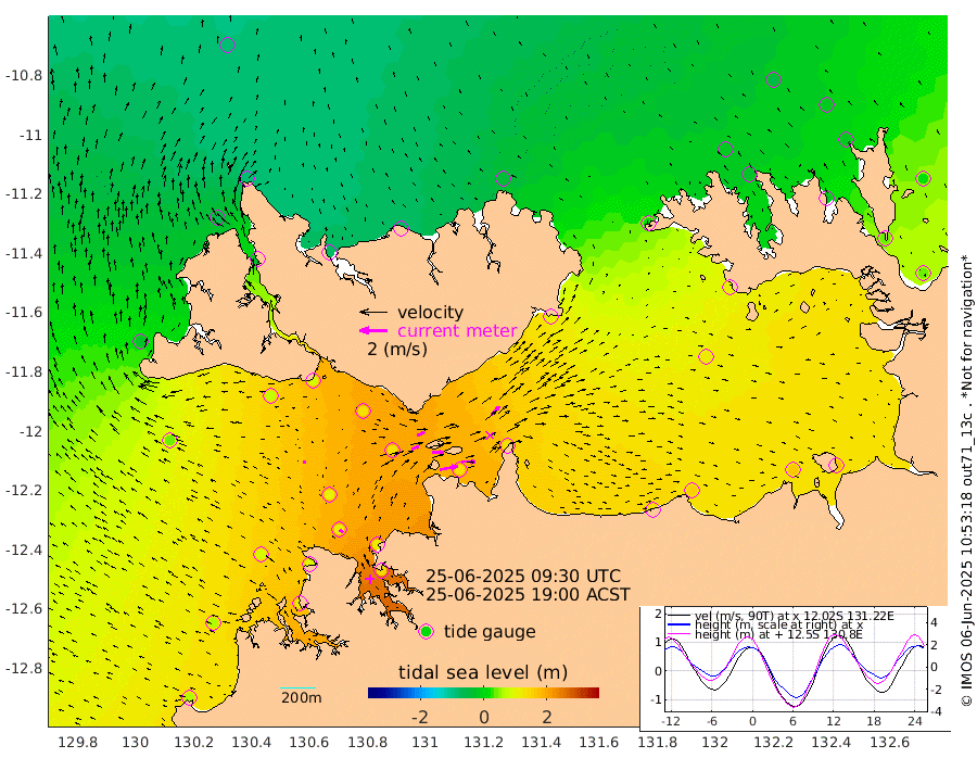 128cm/s 79T +4cm/s rms + 6cm/s 51T. Darwin_C1 52m 102cm/s 92T +4cm/s rms + 7cm/s -161T. Darwin_CW1 22m 52cm/s 69T +4cm/s rms + 8cm/s 61T. Darwin_CW2 34m 87cm/s 42T +3cm/s rms + 9cm/s 98T. Darwin_CW3 22m 84cm/s 90T +5cm/s rms + 7cm/s 88T. Darwin_C3 56m 59cm/s 64T +2cm/s rms + 9cm/s -126T. Darwin_CTbW 22m 23cm/s -76T +1cm/s rms + 1cm/s -47T. DARBGF 30m 31cm/s -48T +4cm/s rms + 3cm/s 80T. NRSDAR 19m -82cm Goodrich Bank 64cm Point Jenny 62cm Native Point 81cm Fish Reef 91cm Tapa Bay -32cm Point Fawcett (Offshore) 115cm Burge Point 79cm Munkunuwa 37cm Beagle A 126cm Parsons Bank 107cm Fenton Patches 128cm Hancox Shoal Area 118cm Nightcliff 144cm Darwin 107cm Charles Point Patches 130cm Glyde Point 132cm Chambers Bay 153cm Point Stuart 125cm Cape Hotham 119cm Christine Reef 167cm West Alligator Head 174cm East Field Island 111cm Two Hills Bay 110cm Camp Point 87cm Medina Inlet South -34cm South Barlow Point -65cm St. Asaph Bay -79cm Cape Van Dieman -72cm Snake Bay -74cm Cache Point -44cm Point Jahleel (Off) 22cm Cape Don -21cm Port Essington -26cm Smith Point - West -19cm NW Peacock Island -52cm North Of Jones Shoal -14cm Peacock Island 34cm Point David -12cm D'urville Point 42cm Copeland Island 21cm One Tree Point