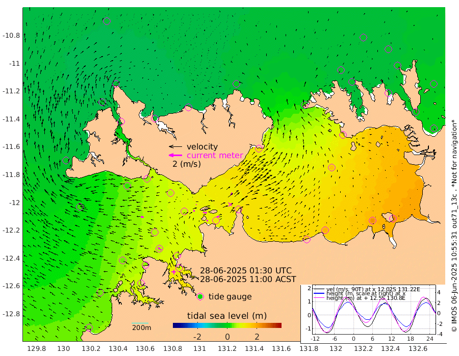 21cm/s 80T +4cm/s rms + 6cm/s 51T. Darwin_C1 52m 37cm/s 88T +4cm/s rms + 7cm/s -161T. Darwin_CW1 22m 18cm/s 77T +4cm/s rms + 8cm/s 61T. Darwin_CW2 34m 41cm/s 36T +3cm/s rms + 9cm/s 98T. Darwin_CW3 22m 57cm/s 93T +5cm/s rms + 7cm/s 88T. Darwin_C3 56m 8cm/s 78T +2cm/s rms + 9cm/s -126T. Darwin_CTbW 22m 47cm/s -81T +1cm/s rms + 1cm/s -47T. DARBGF 30m 56cm/s -51T +4cm/s rms + 3cm/s 80T. NRSDAR 19m -34cm Goodrich Bank 40cm Point Jenny 38cm Native Point 43cm Fish Reef 53cm Tapa Bay -14cm Point Fawcett (Offshore) 75cm Burge Point 31cm Munkunuwa 25cm Beagle A 61cm Parsons Bank 66cm Fenton Patches 78cm Hancox Shoal Area 76cm Nightcliff 89cm Darwin 64cm Charles Point Patches 116cm Glyde Point 178cm Chambers Bay 190cm Point Stuart 125cm Cape Hotham 164cm Christine Reef 216cm West Alligator Head 247cm East Field Island 135cm Two Hills Bay 135cm Camp Point 49cm Medina Inlet South -30cm South Barlow Point -33cm St. Asaph Bay -40cm Cape Van Dieman -39cm Snake Bay -29cm Cache Point -12cm Point Jahleel (Off) 30cm Cape Don -19cm Port Essington -23cm Smith Point - West -22cm NW Peacock Island -28cm North Of Jones Shoal -10cm Peacock Island -10cm Point David -26cm D'urville Point -9cm Copeland Island -8cm One Tree Point
