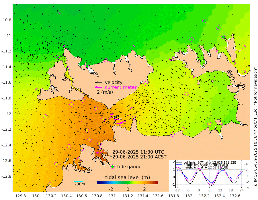 175cm/s 78T +4cm/s rms + 6cm/s 51T. Darwin_C1 52m 117cm/s 92T +4cm/s rms + 7cm/s -161T. Darwin_CW1 22m 80cm/s 72T +4cm/s rms + 8cm/s 61T. Darwin_CW2 34m 101cm/s 44T +3cm/s rms + 9cm/s 98T. Darwin_CW3 22m 124cm/s 89T +5cm/s rms + 7cm/s 88T. Darwin_C3 56m 81cm/s 65T +2cm/s rms + 9cm/s -126T. Darwin_CTbW 22m 19cm/s 79T +1cm/s rms + 1cm/s -47T. DARBGF 30m 13cm/s 90T +4cm/s rms + 3cm/s 80T. NRSDAR 19m -28cm Goodrich Bank 120cm Point Jenny 116cm Native Point 140cm Fish Reef 147cm Tapa Bay 50cm Point Fawcett (Offshore) 156cm Burge Point 141cm Munkunuwa 87cm Beagle A 175cm Parsons Bank 140cm Fenton Patches 168cm Hancox Shoal Area 164cm Nightcliff 190cm Darwin 166cm Charles Point Patches 136cm Glyde Point 107cm Chambers Bay 110cm Point Stuart 123cm Cape Hotham 88cm Christine Reef 114cm West Alligator Head 96cm East Field Island 101cm Two Hills Bay 89cm Camp Point 149cm Medina Inlet South 38cm South Barlow Point 6cm St. Asaph Bay -21cm Cape Van Dieman -11cm Snake Bay -16cm Cache Point 5cm Point Jahleel (Off) 59cm Cape Don 31cm Port Essington 28cm Smith Point - West 29cm NW Peacock Island 10cm North Of Jones Shoal 8cm Peacock Island 72cm Point David 39cm D'urville Point 77cm Copeland Island 66cm One Tree Point
