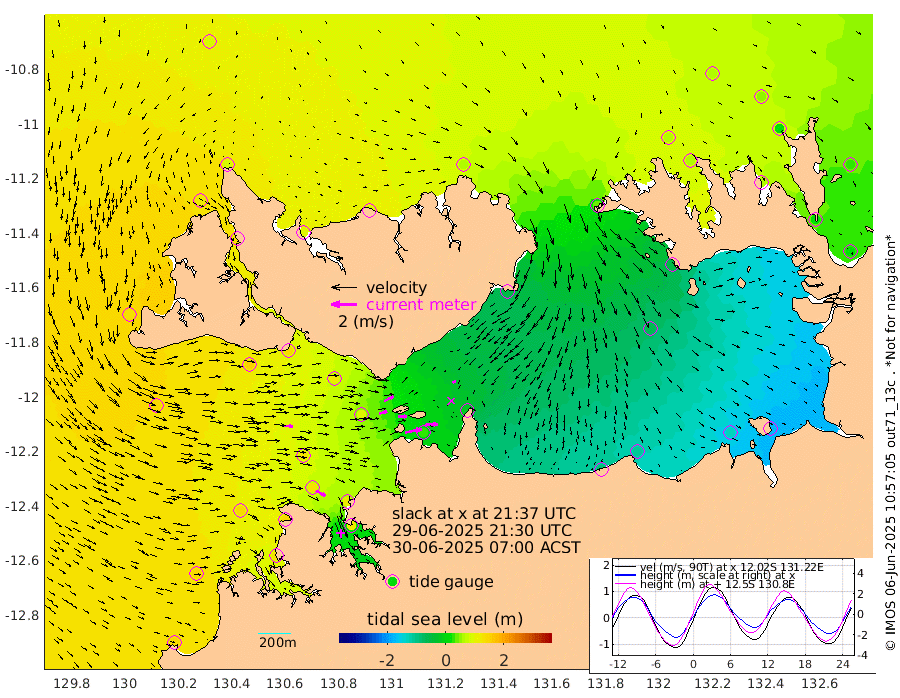 130cm/s 78T +4cm/s rms + 6cm/s 51T. Darwin_C1 52m 99cm/s 87T +4cm/s rms + 7cm/s -161T. Darwin_CW1 22m 64cm/s 74T +4cm/s rms + 8cm/s 61T. Darwin_CW2 34m 30cm/s 69T +3cm/s rms + 9cm/s 98T. Darwin_CW3 22m 70cm/s 87T +5cm/s rms + 7cm/s 88T. Darwin_C3 56m 82cm/s 63T +2cm/s rms + 9cm/s -126T. Darwin_CTbW 22m 80cm/s 91T +1cm/s rms + 1cm/s -47T. DARBGF 30m 81cm/s 120T +4cm/s rms + 3cm/s 80T. NRSDAR 19m 83cm Goodrich Bank 135cm Point Jenny 138cm Native Point 138cm Fish Reef 135cm Tapa Bay 133cm Point Fawcett (Offshore) 127cm Burge Point 151cm Munkunuwa 145cm Beagle A 118cm Parsons Bank 133cm Fenton Patches 98cm Hancox Shoal Area 123cm Nightcliff 113cm Darwin 126cm Charles Point Patches 23cm Glyde Point -81cm Chambers Bay -107cm Point Stuart -16cm Cape Hotham -66cm Christine Reef -126cm West Alligator Head -170cm East Field Island -49cm Two Hills Bay -46cm Camp Point 139cm Medina Inlet South 135cm South Barlow Point 122cm St. Asaph Bay 90cm Cape Van Dieman 92cm Snake Bay 79cm Cache Point 67cm Point Jahleel (Off) 37cm Cape Don 57cm Port Essington 66cm Smith Point - West 53cm NW Peacock Island 60cm North Of Jones Shoal 20cm Peacock Island 17cm Point David 57cm D'urville Point 12cm Copeland Island 23cm One Tree Point