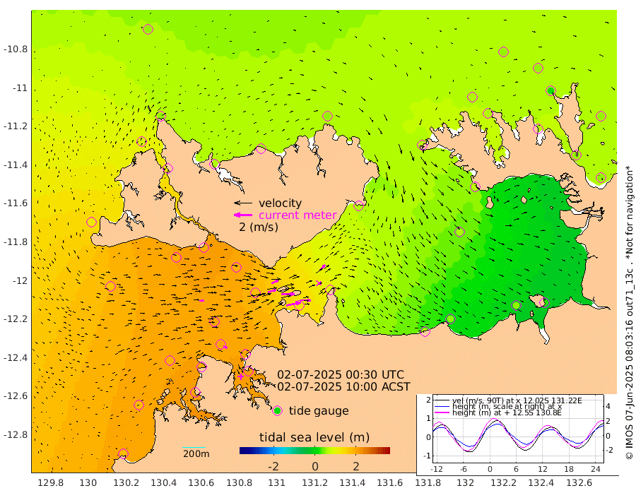 160cm/s 78T +4cm/s rms + 6cm/s 51T. Darwin_C1 52m 113cm/s 92T +4cm/s rms + 7cm/s -161T. Darwin_CW1 22m 96cm/s 73T +4cm/s rms + 8cm/s 61T. Darwin_CW2 34m 82cm/s 46T +3cm/s rms + 9cm/s 98T. Darwin_CW3 22m 145cm/s 89T +5cm/s rms + 7cm/s 88T. Darwin_C3 56m 83cm/s 65T +2cm/s rms + 9cm/s -126T. Darwin_CTbW 22m 47cm/s 85T +1cm/s rms + 1cm/s -47T. DARBGF 30m 44cm/s 112T +4cm/s rms + 3cm/s 80T. NRSDAR 19m 45cm Goodrich Bank 169cm Point Jenny 170cm Native Point 183cm Fish Reef 185cm Tapa Bay 117cm Point Fawcett (Offshore) 194cm Burge Point 183cm Munkunuwa 161cm Beagle A 191cm Parsons Bank 192cm Fenton Patches 178cm Hancox Shoal Area 197cm Nightcliff 207cm Darwin 196cm Charles Point Patches 130cm Glyde Point 70cm Chambers Bay 53cm Point Stuart 97cm Cape Hotham 65cm Christine Reef 52cm West Alligator Head 27cm East Field Island 71cm Two Hills Bay 67cm Camp Point 191cm Medina Inlet South 112cm South Barlow Point 85cm St. Asaph Bay 49cm Cape Van Dieman 59cm Snake Bay 49cm Cache Point 56cm Point Jahleel (Off) 75cm Cape Don 58cm Port Essington 62cm Smith Point - West 54cm NW Peacock Island 48cm North Of Jones Shoal 17cm Peacock Island 47cm Point David 60cm D'urville Point 46cm Copeland Island 53cm One Tree Point